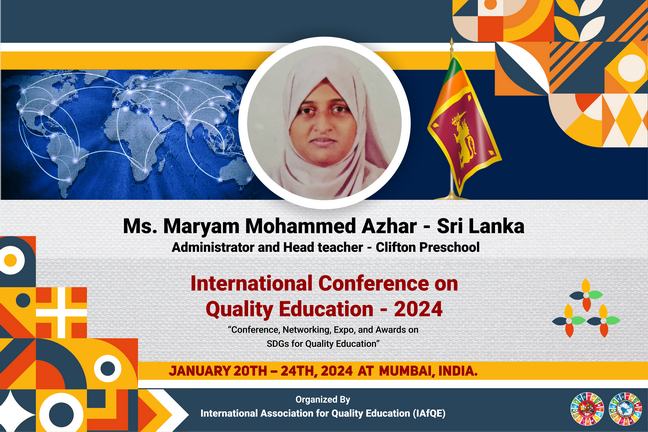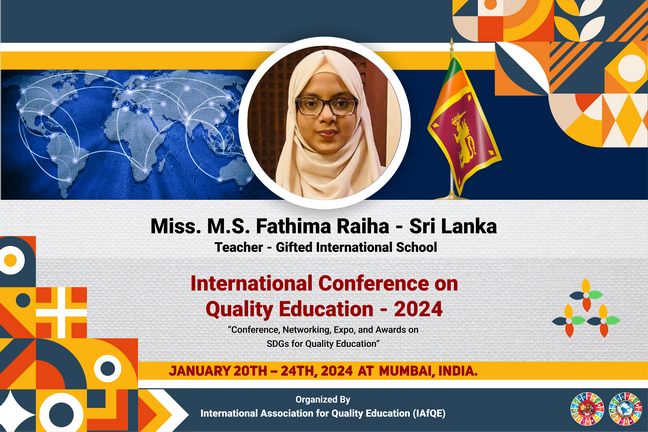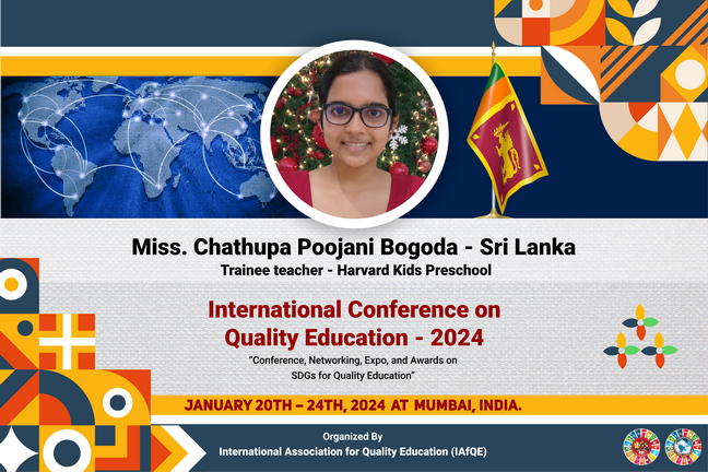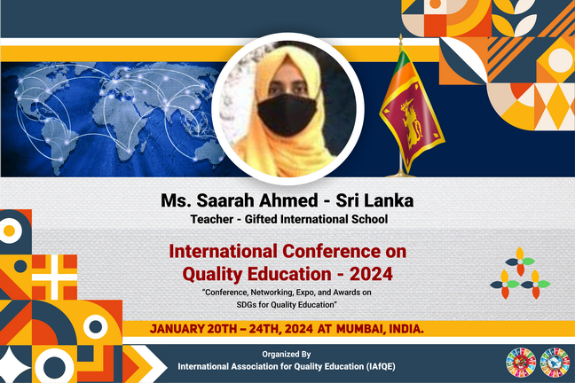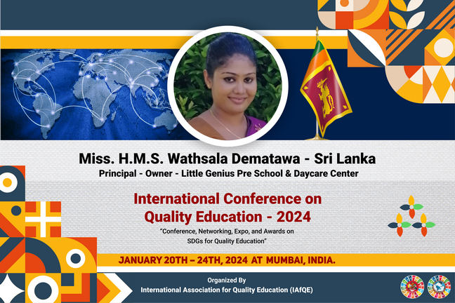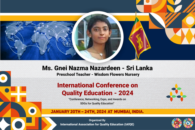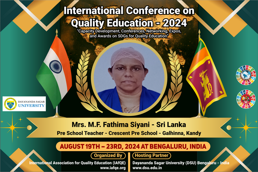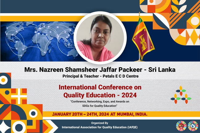 Educators who successfully complete all lectures, assignments, and the final examination associated with their selected subject areas will be eligible to receive international certificates. These certificates will be awarded at the International Awarding Ceremony of the International Conference on Quality Education, scheduled to be held in Sri Lanka.