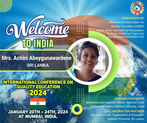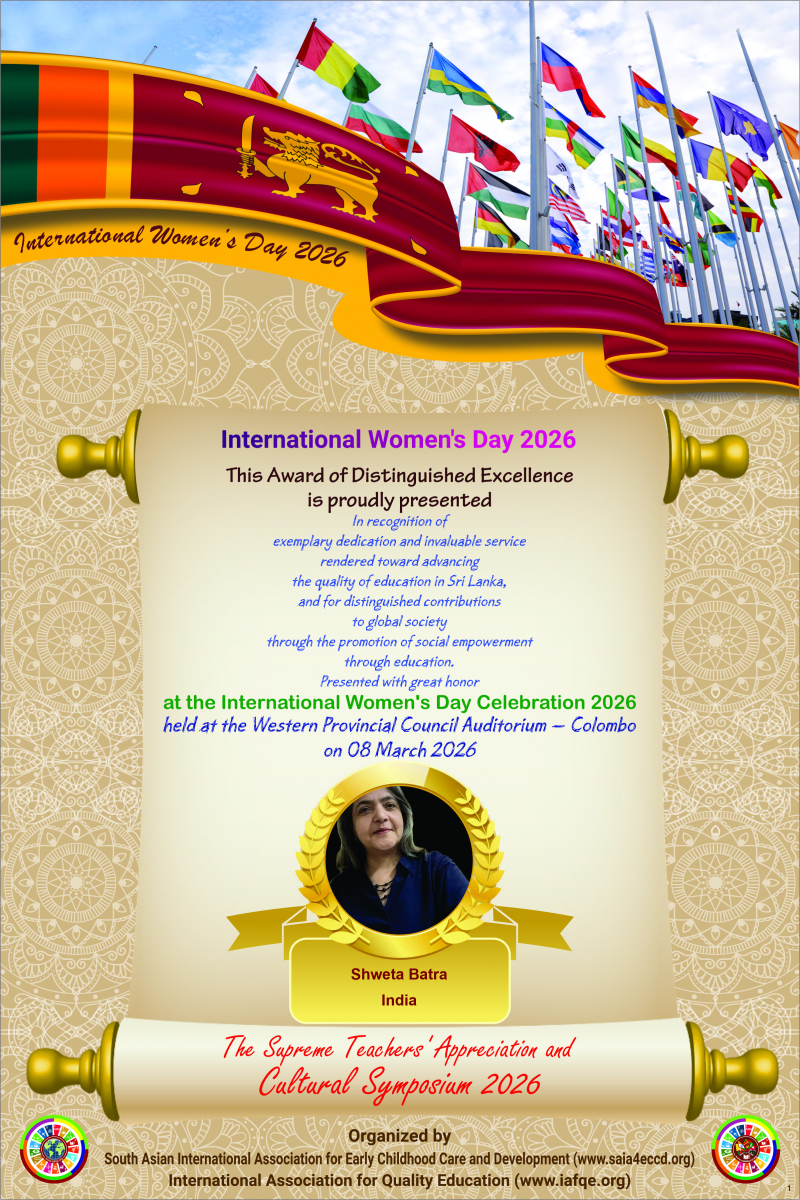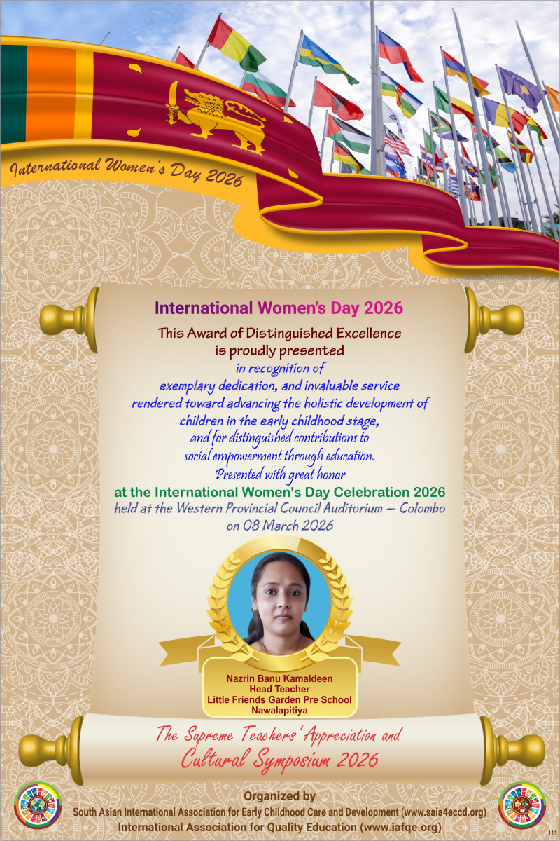 IAFQE with SAIA4ECCD has implemented the “International Project for Capacity Development of ECCD and Primary Teachers” in parallel with its international conference series on quality education. The main objective of the project is to build the capacity of ECCD and Primary teachers in South Asian countries, with the support of educators from the global community.