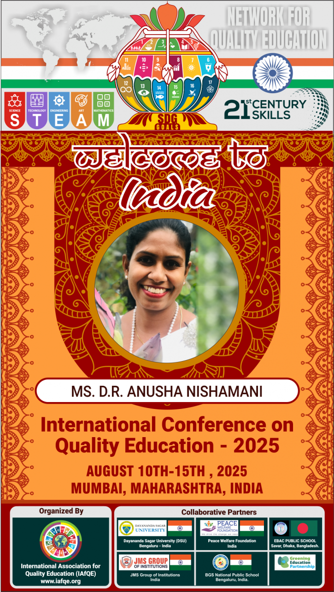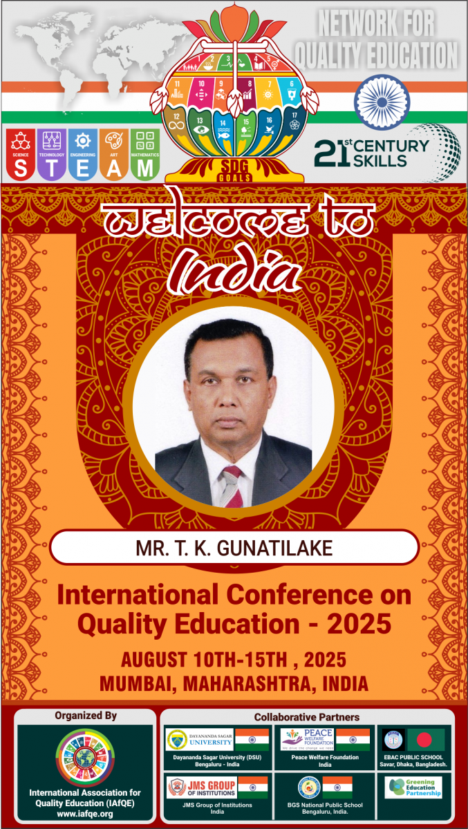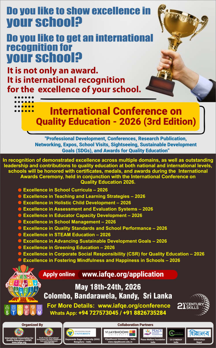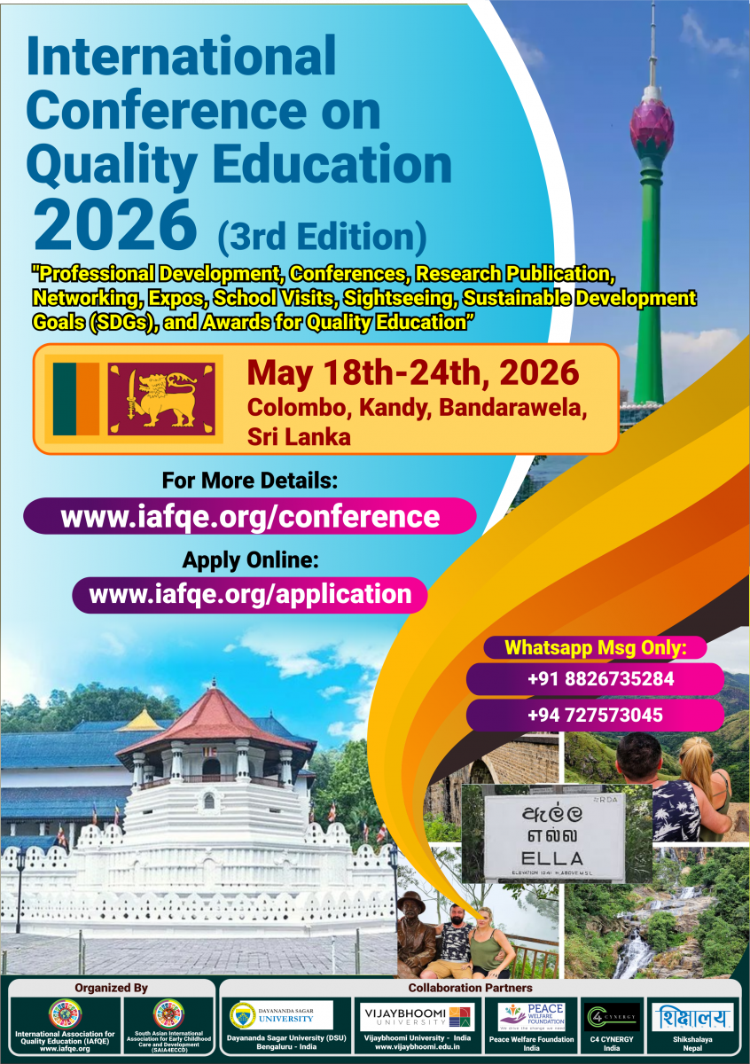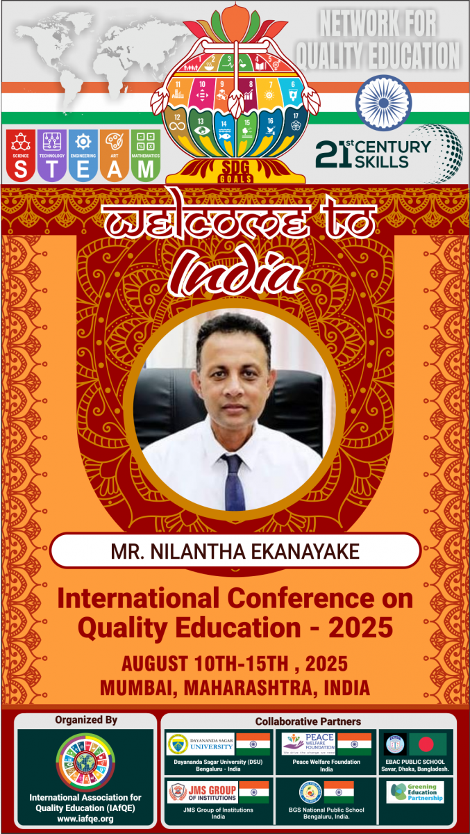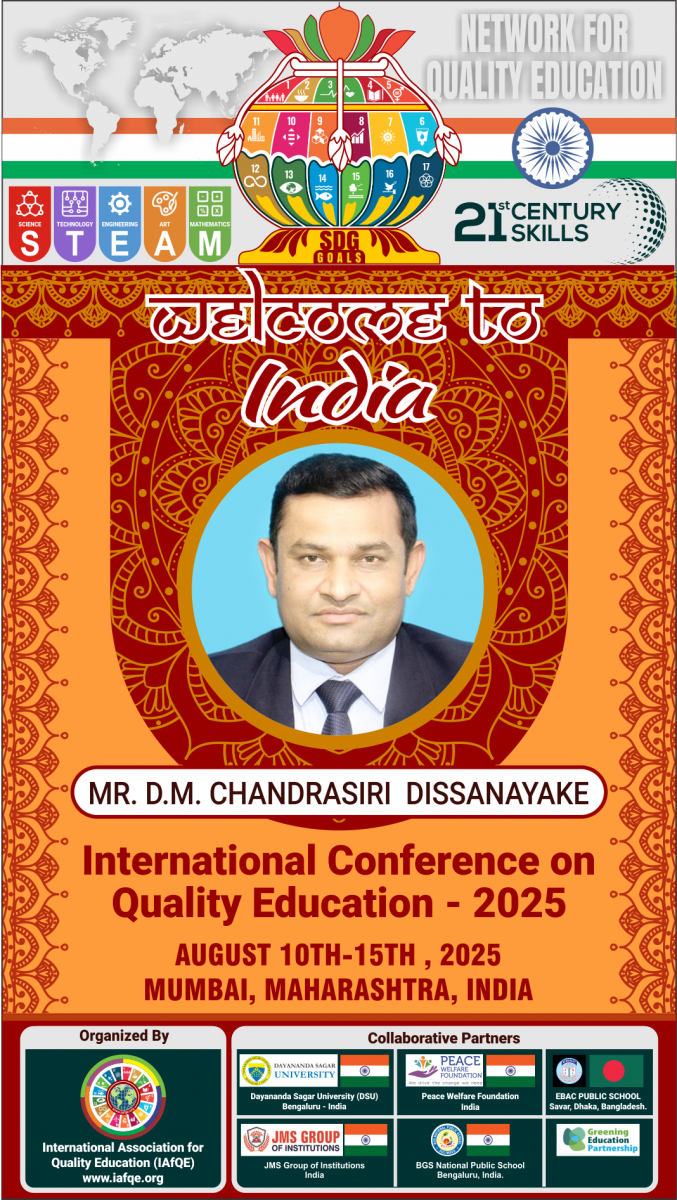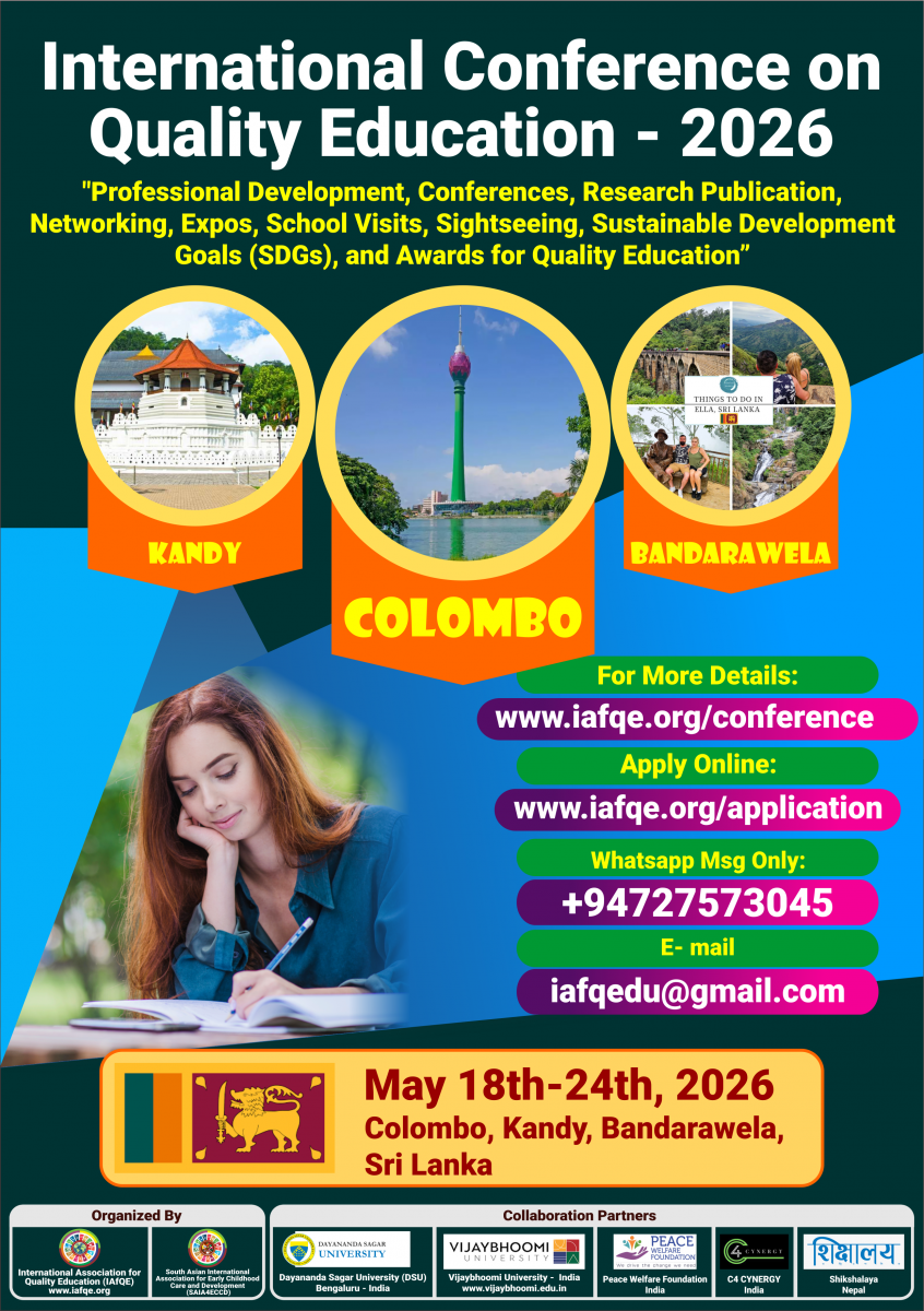 The conference is organized by the International Association for Quality Education (IAFQE) in collaborative partnership with the Ministry of Education, Uva Province, Sri Lanka; Dayananda Sagar University, Bengaluru, India; Vijaybhoomi University, Mumbai, India; the Pease Welfare Foundation; C4Cynergy, Mumbai, India; and Shikshalaya, Nepal.