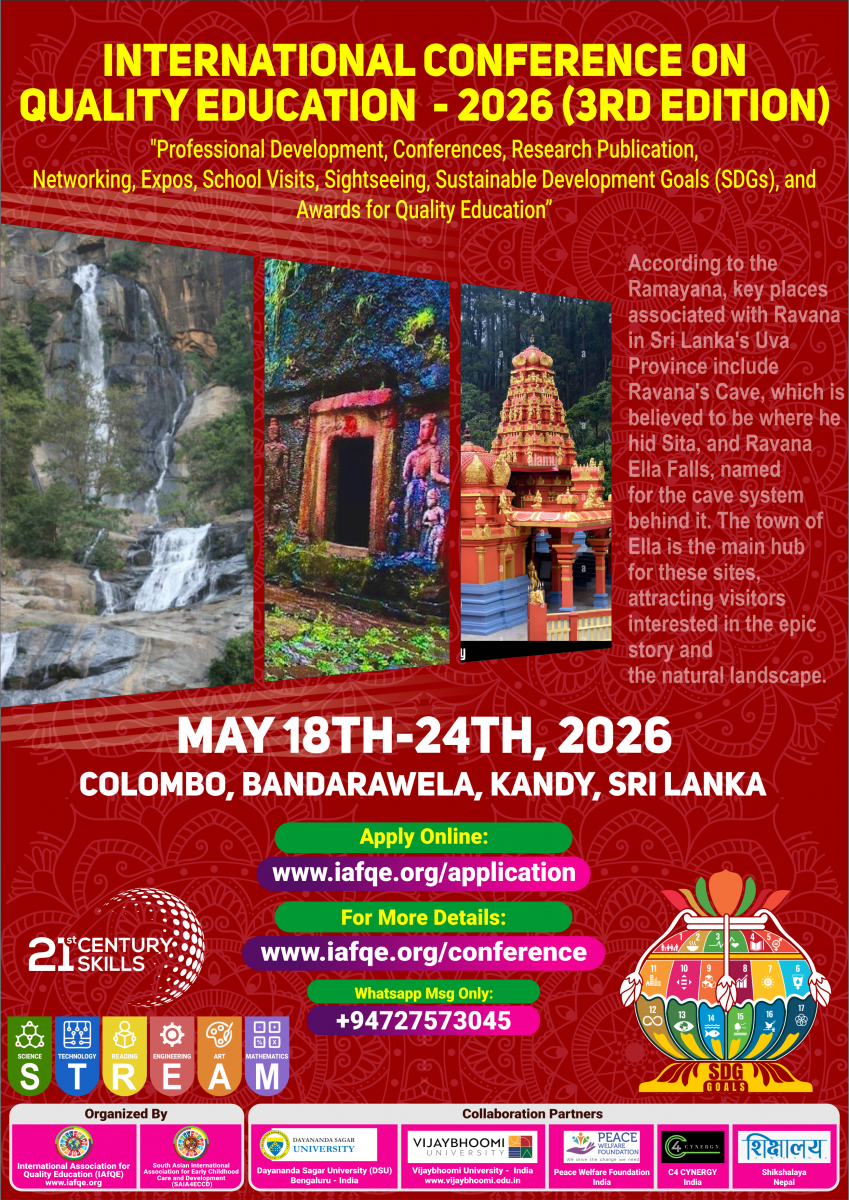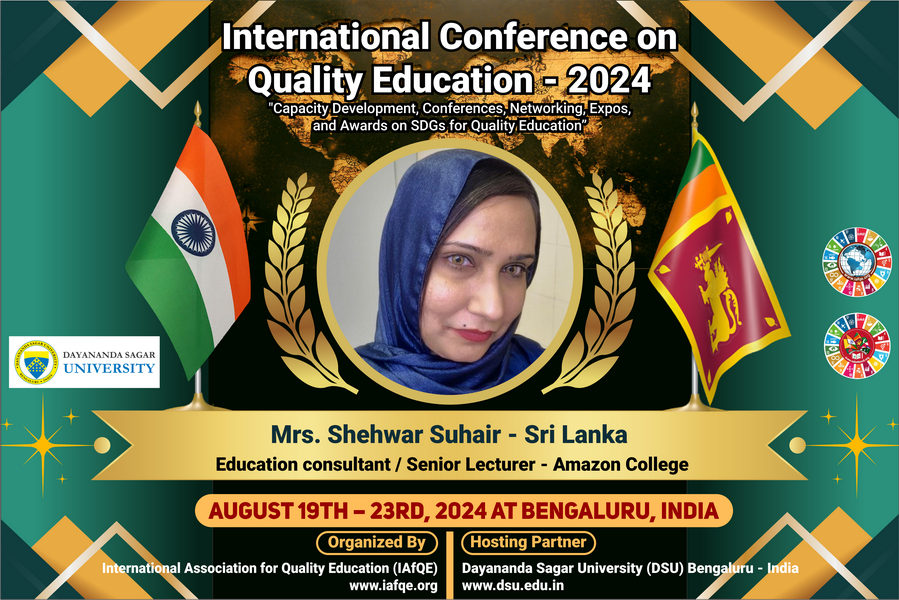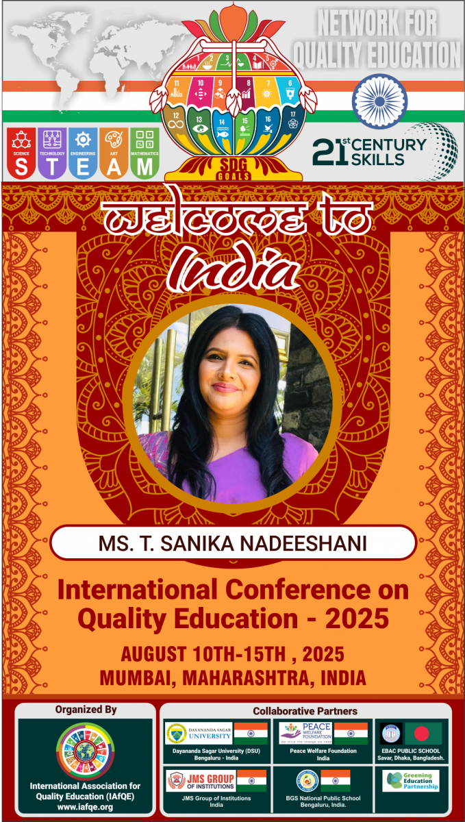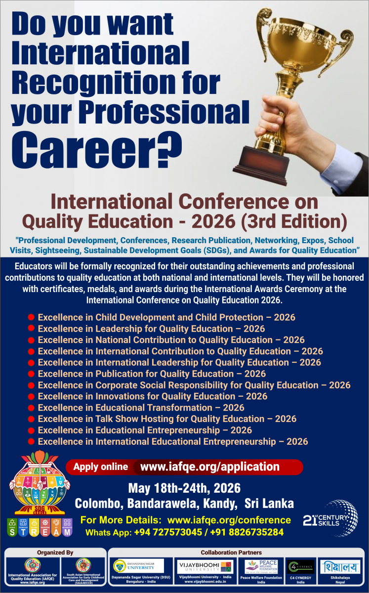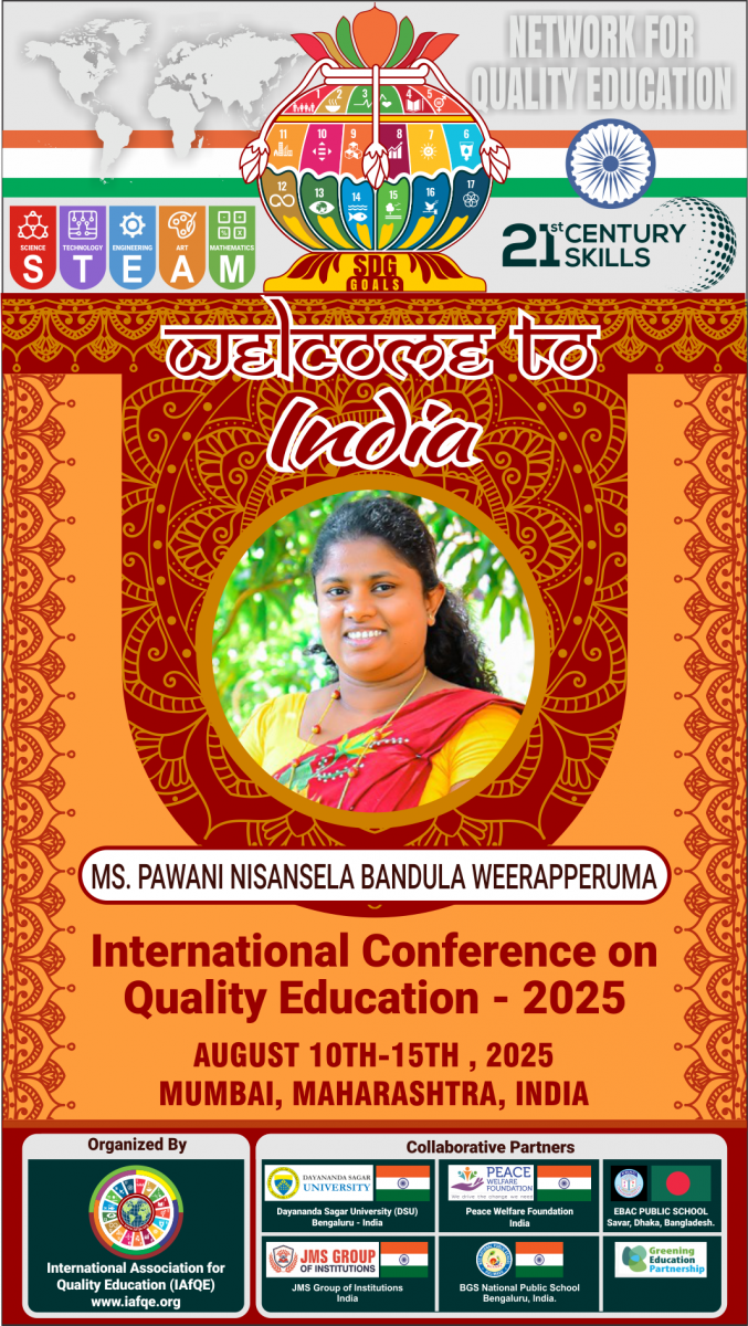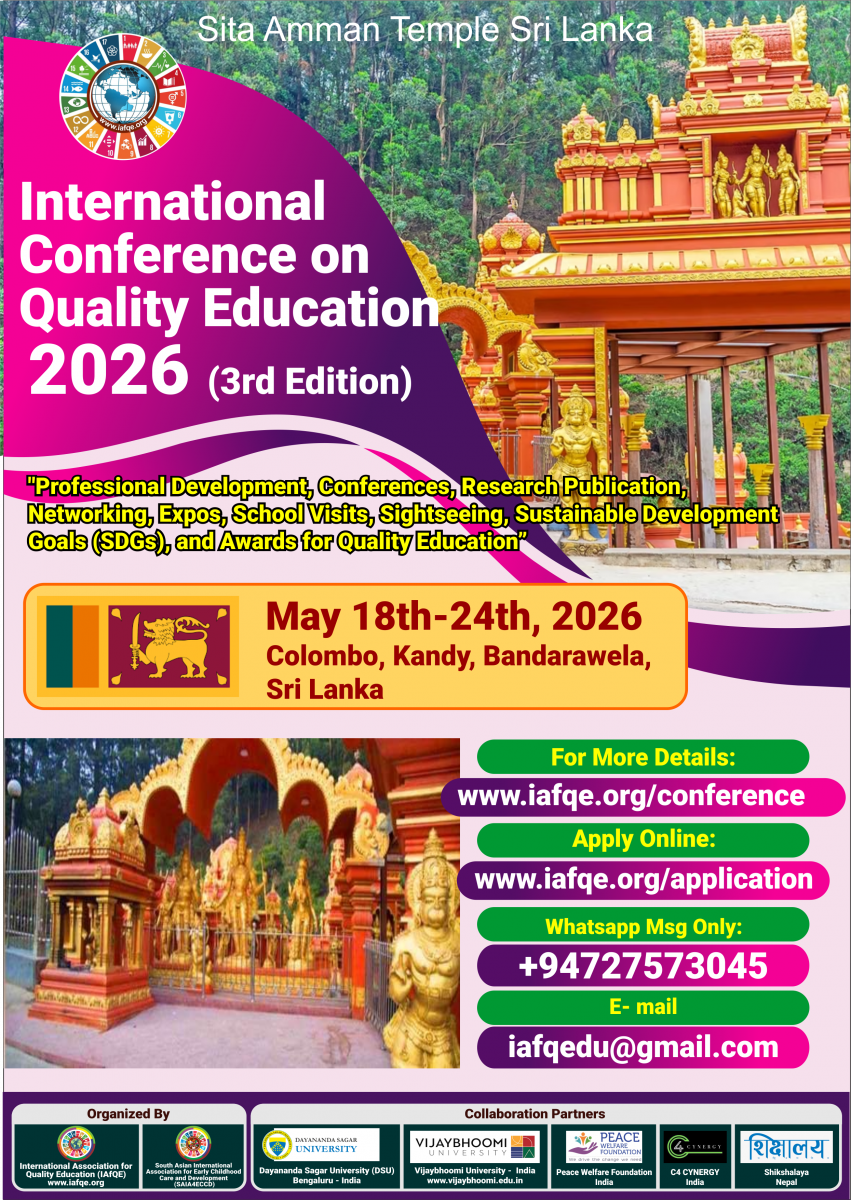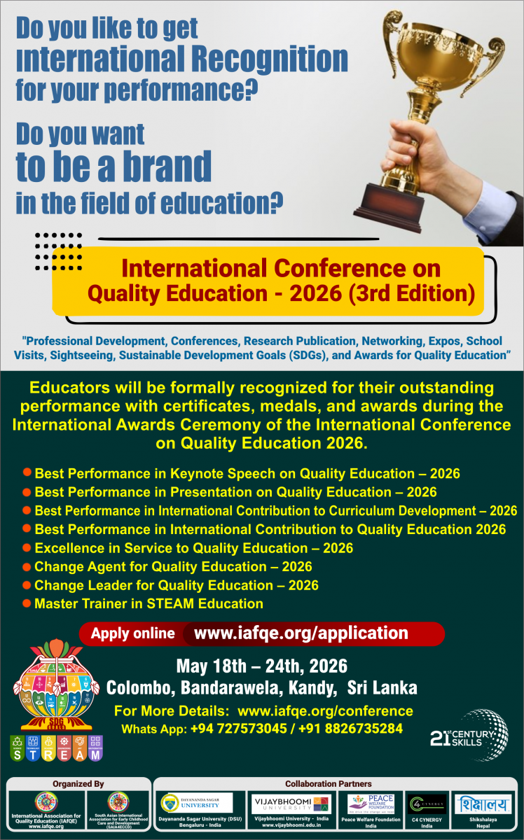 The conference is organized by the International Association for Quality Education (IAFQE) in collaborative partnership with the Ministry of Education, Uva Province, Sri Lanka; Dayananda Sagar University, Bengaluru, India; Vijaybhoomi University, Mumbai, India; the Pease Welfare Foundation; C4Cynergy, Mumbai, India; and Shikshalaya, Nepal.