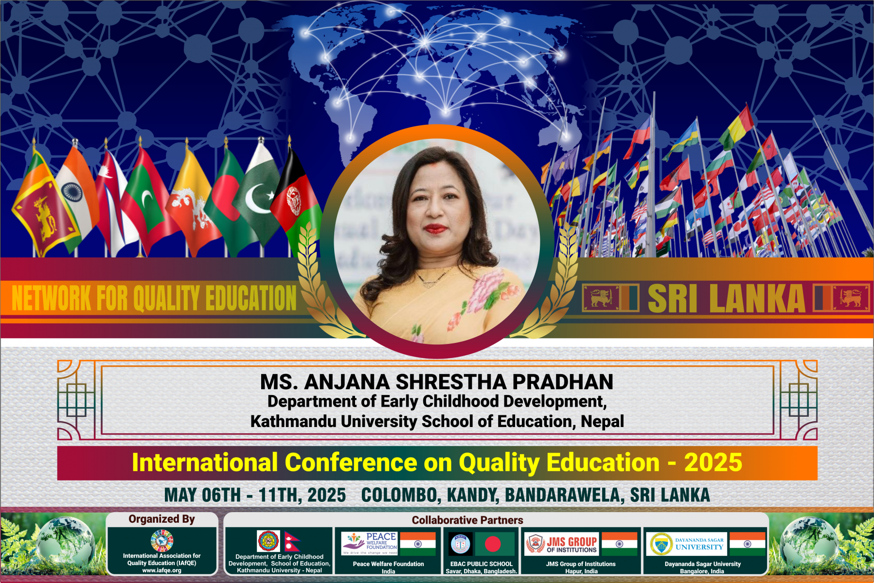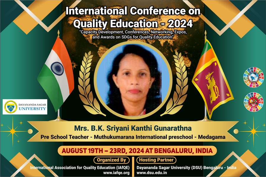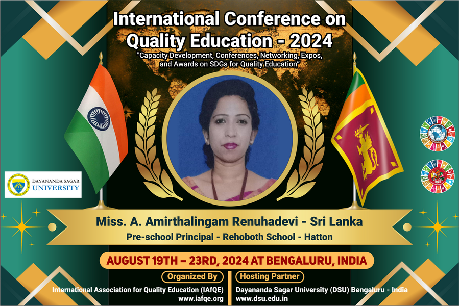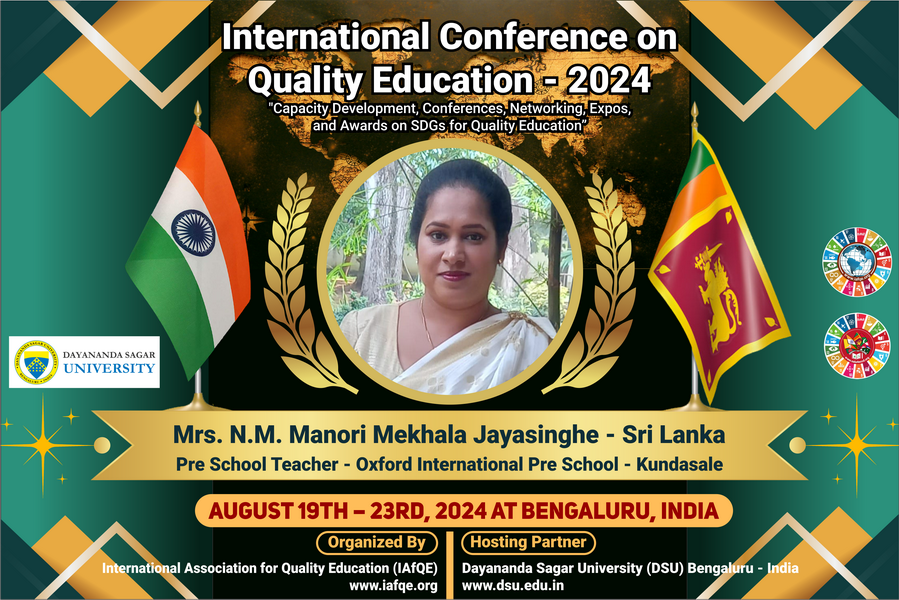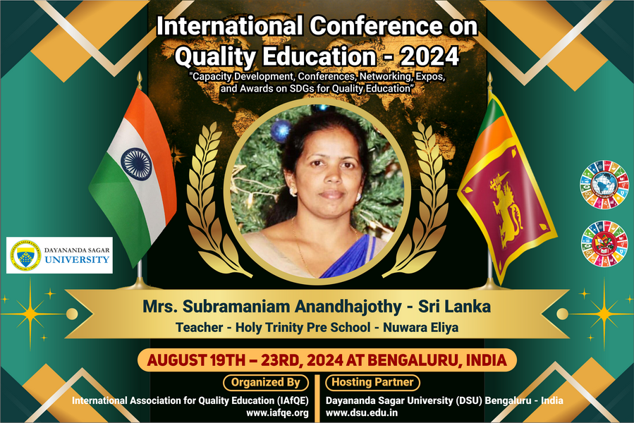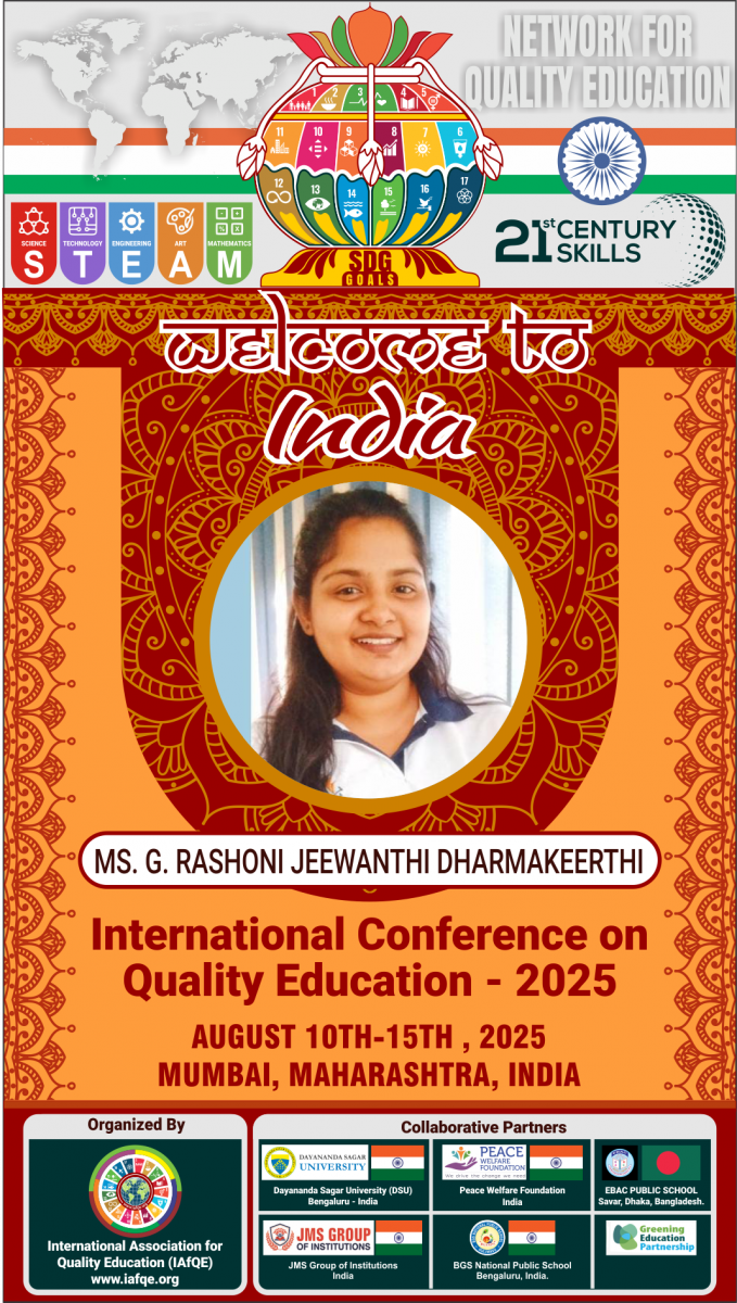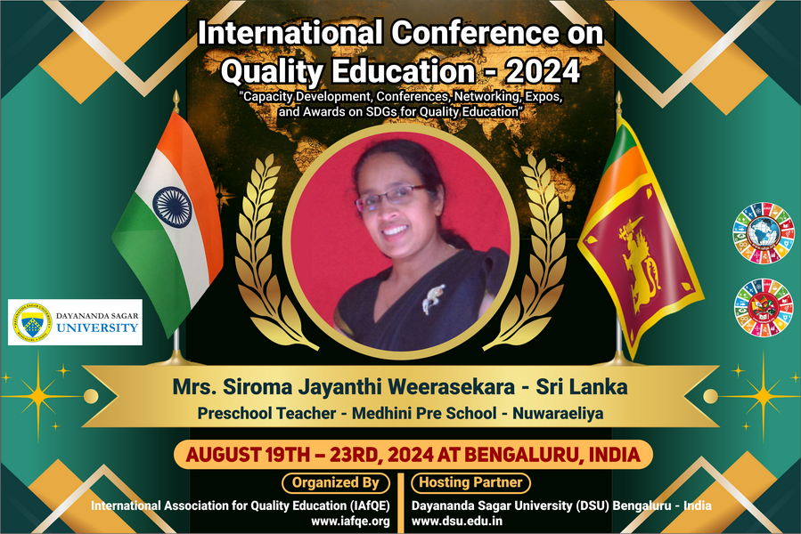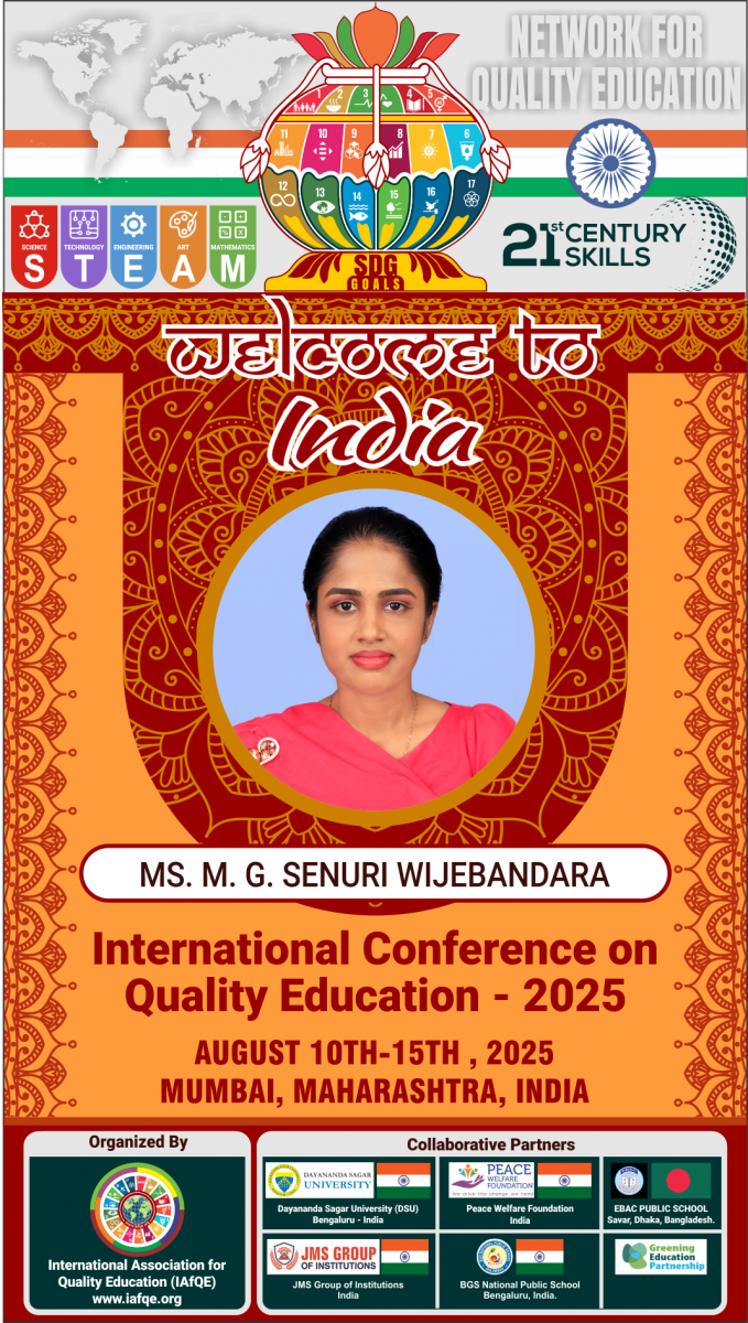 The conference is organized by the International Association for Quality Education (IAFQE) in collaborative partnership with the Ministry of Education, Uva Province, Sri Lanka; Dayananda Sagar University, Bengaluru, India; Vijaybhoomi University, Mumbai, India; the Pease Welfare Foundation; C4Cynergy, Mumbai, India; and Shikshalaya, Nepal.