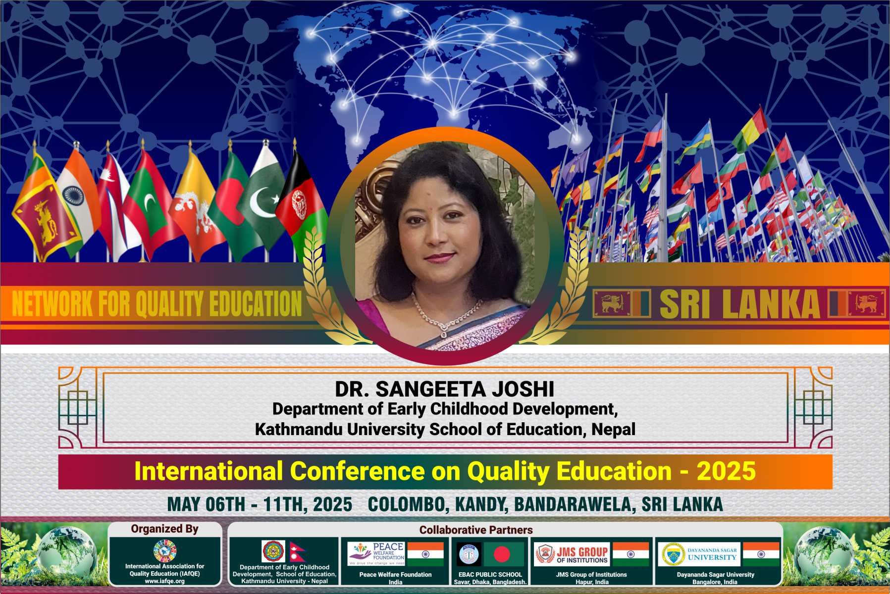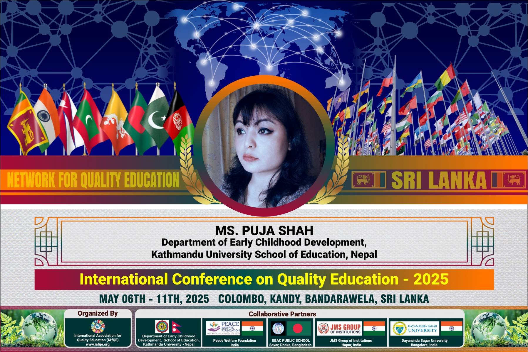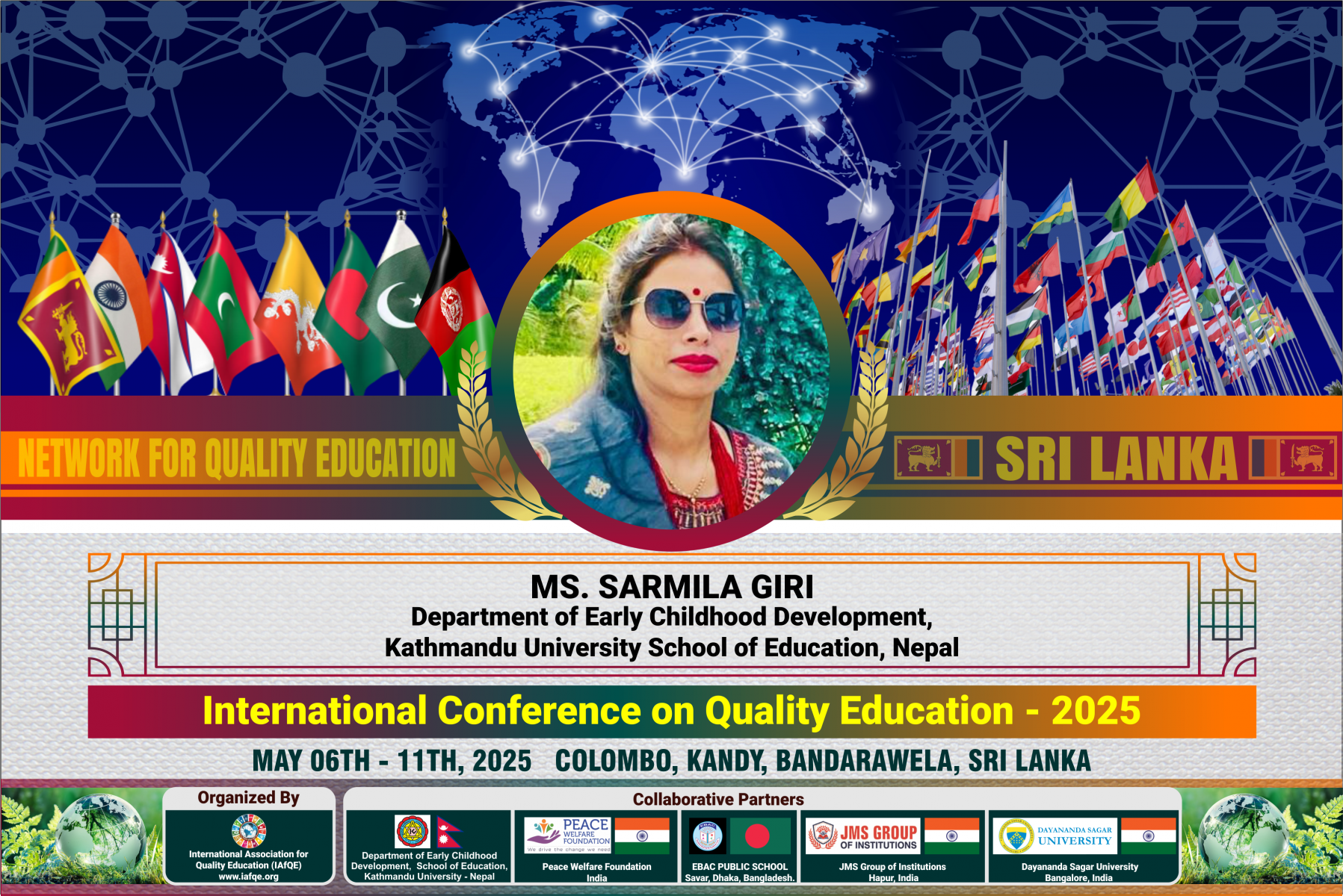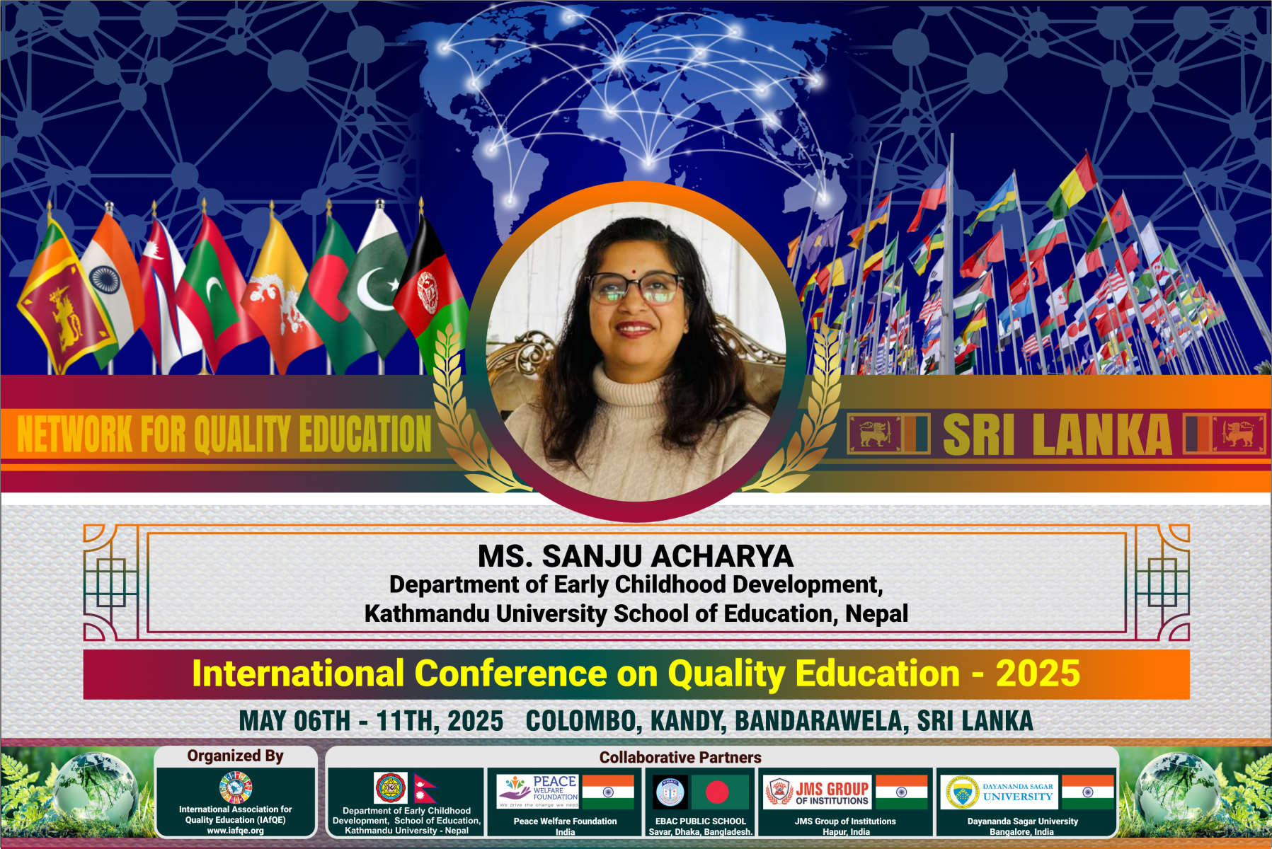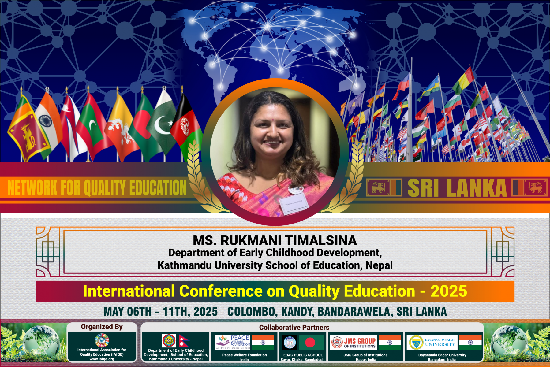 The conference is organized by the International Association for Quality Education (IAFQE) in collaborative partnership with the Ministry of Education, Uva Province, Sri Lanka; Dayananda Sagar University, Bengaluru, India; Vijaybhoomi University, Mumbai, India; the Pease Welfare Foundation; C4Cynergy, Mumbai, India; and Shikshalaya, Nepal.