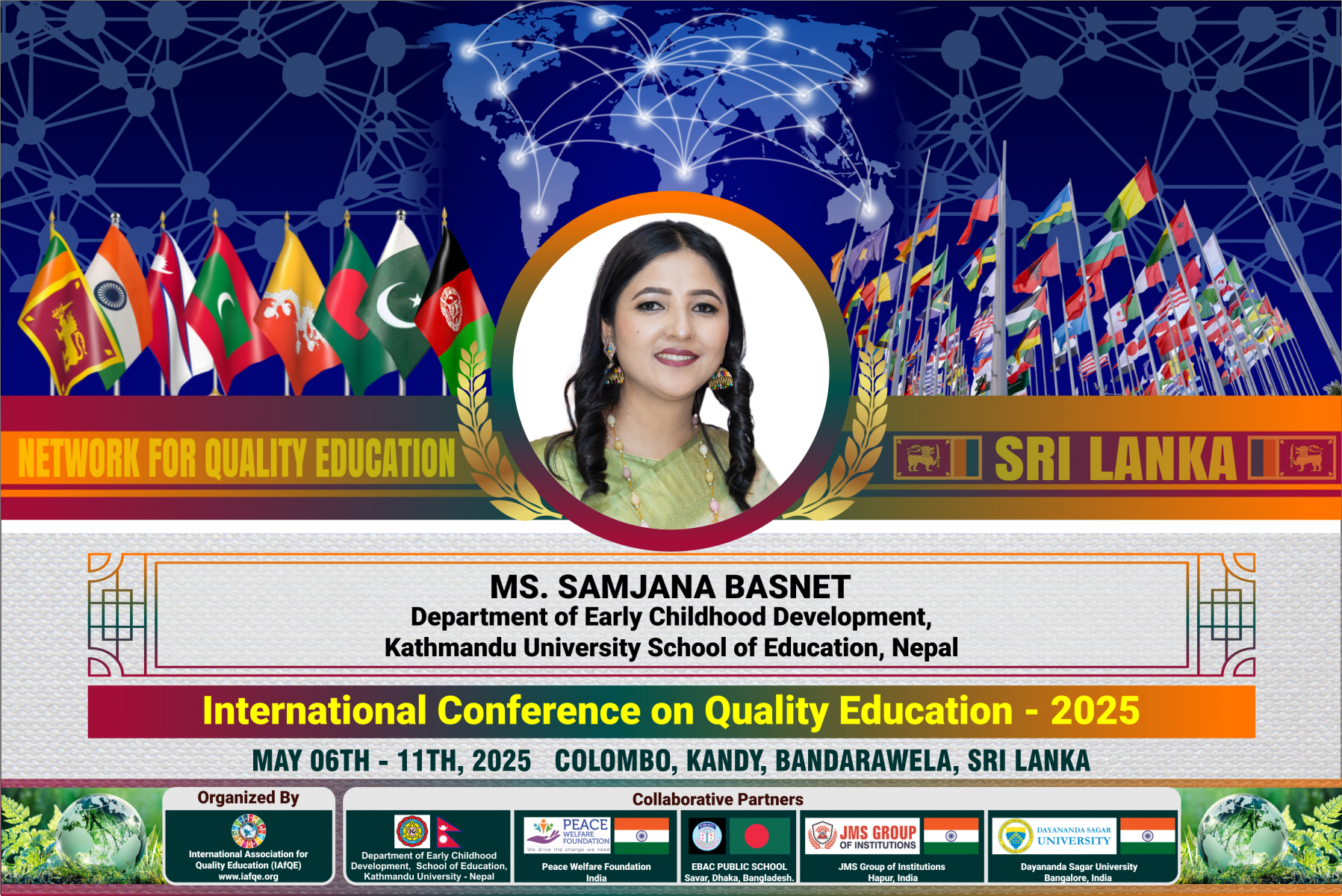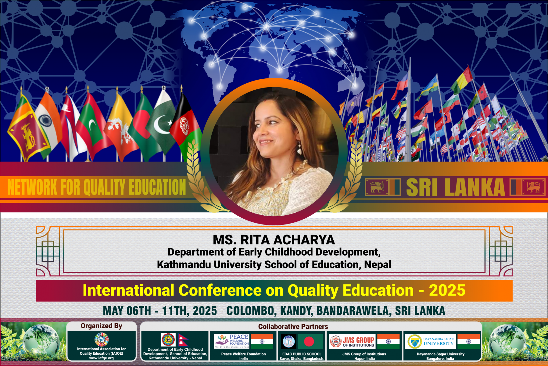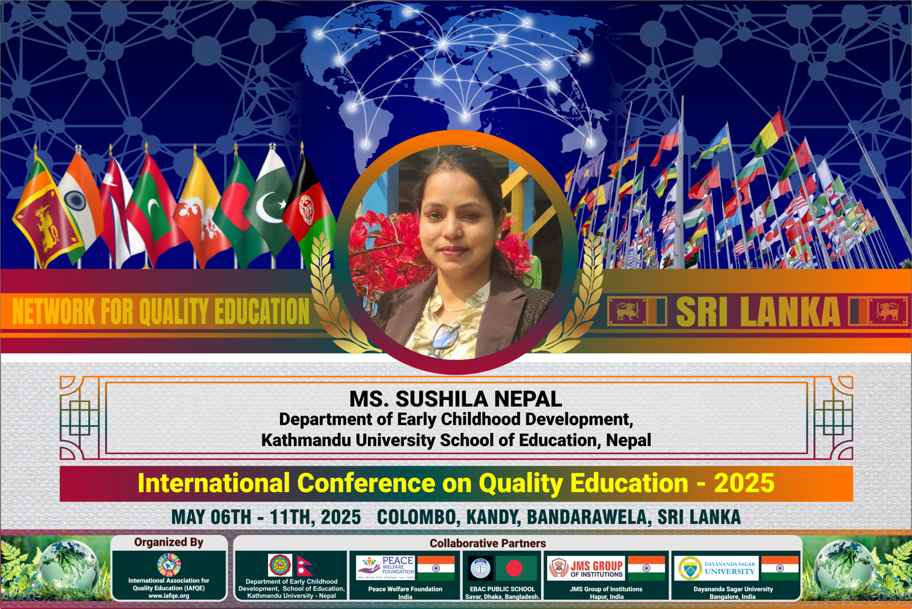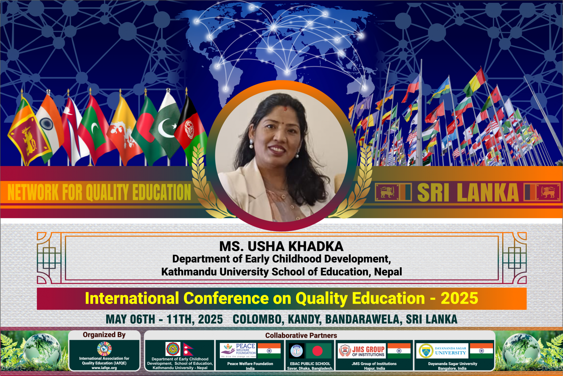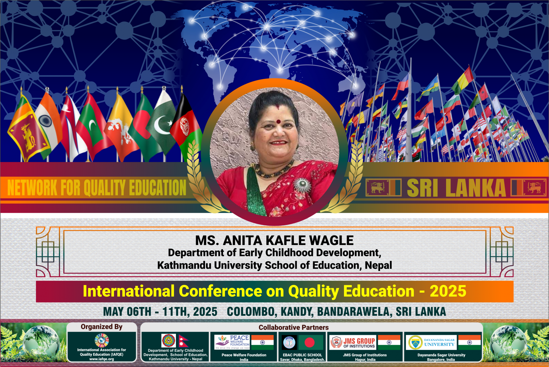 The conference is organized by the International Association for Quality Education (IAFQE) in collaborative partnership with the Ministry of Education, Uva Province, Sri Lanka; Dayananda Sagar University, Bengaluru, India; Vijaybhoomi University, Mumbai, India; the Pease Welfare Foundation; C4Cynergy, Mumbai, India; and Shikshalaya, Nepal.
