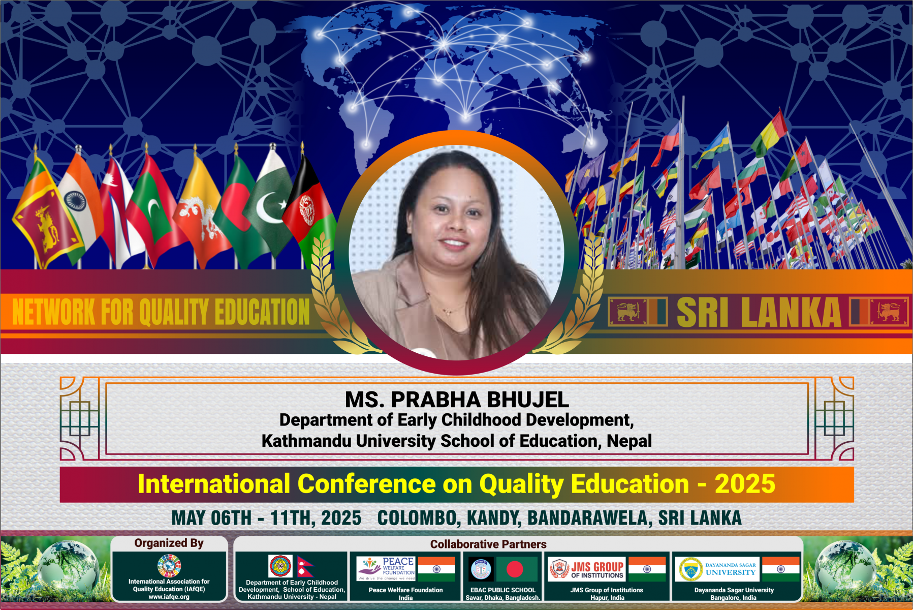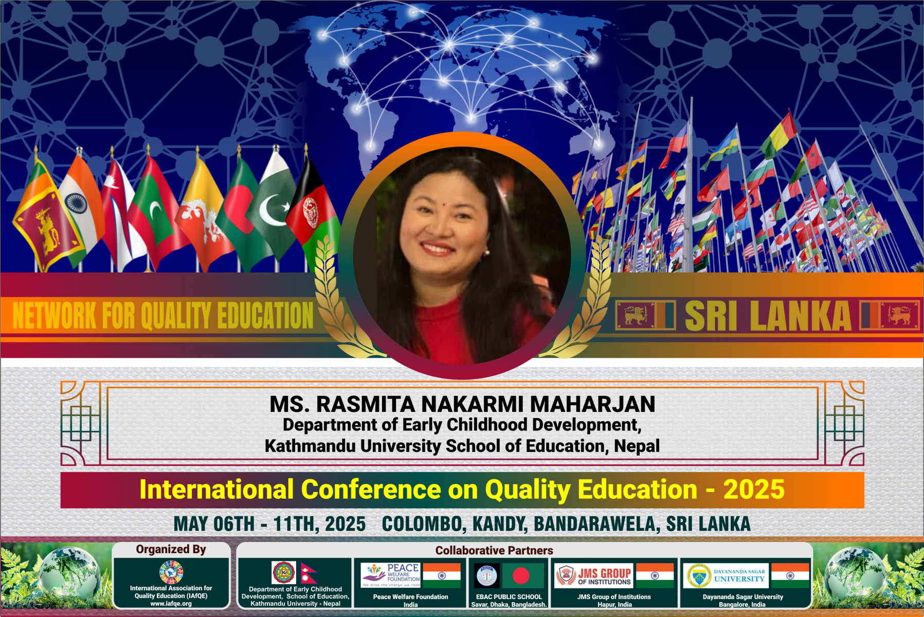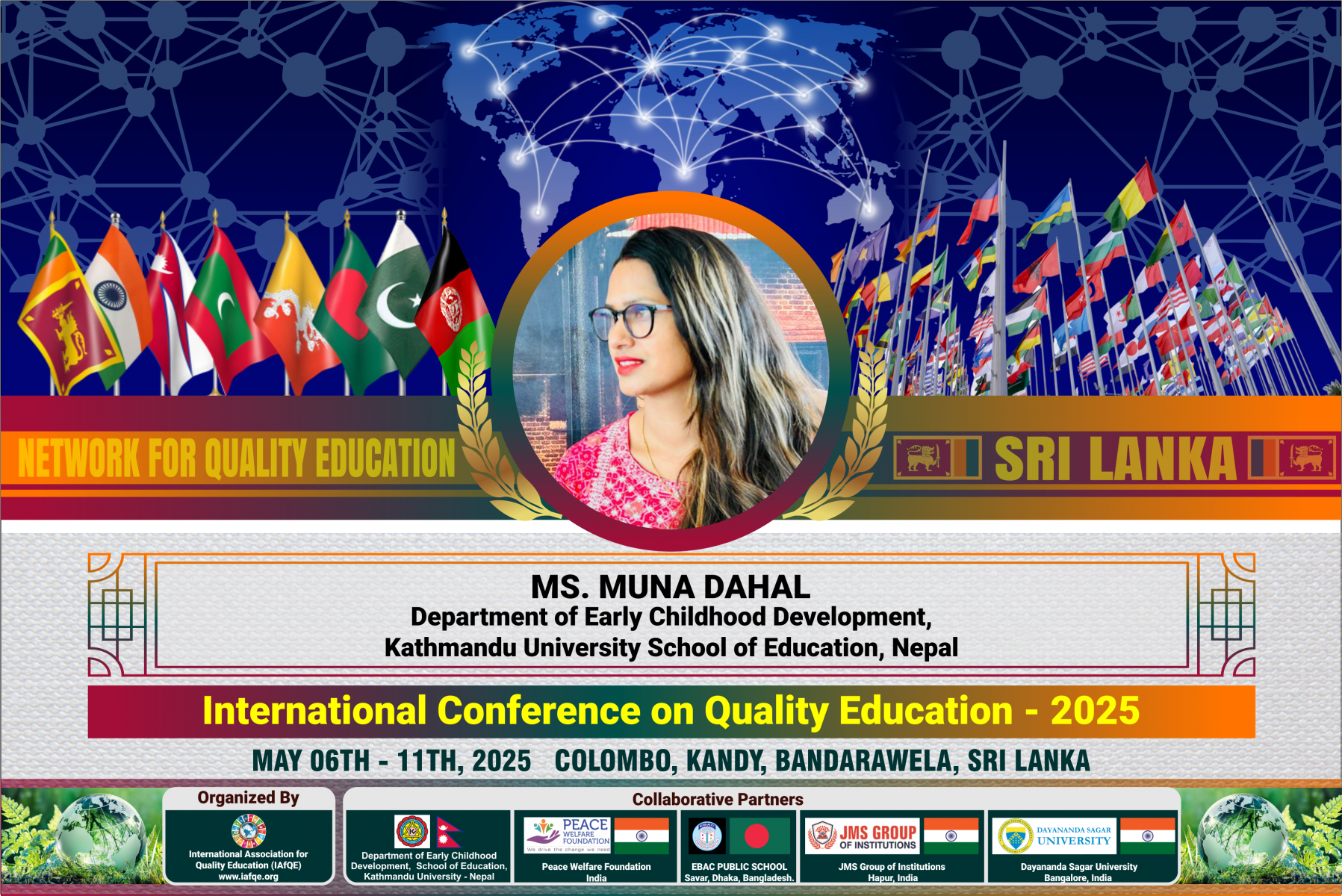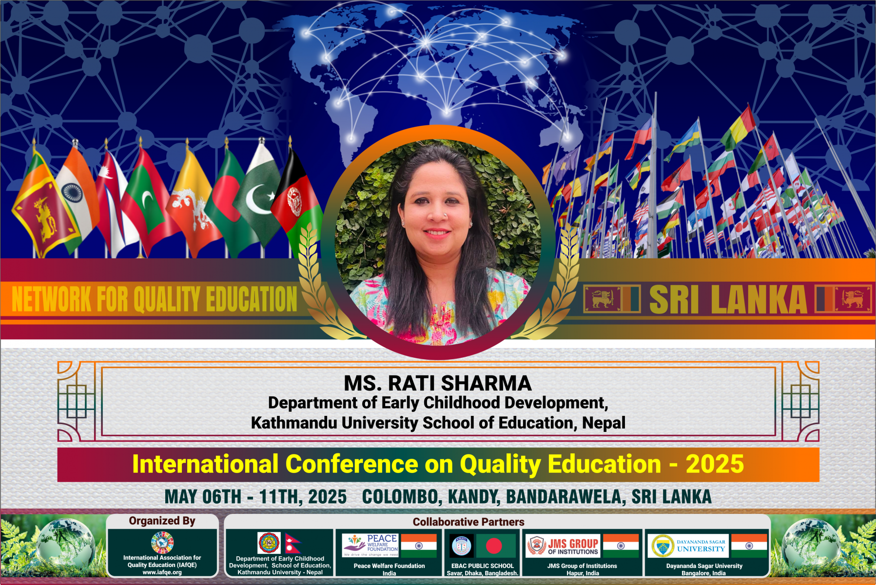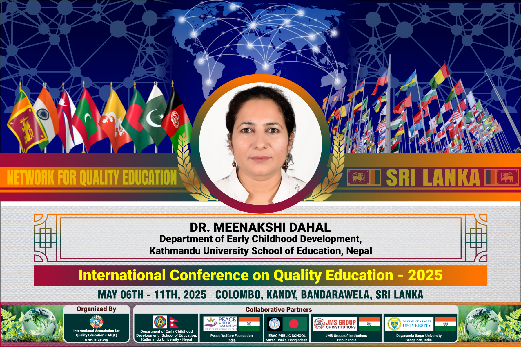 The conference is organized by the International Association for Quality Education (IAFQE) in collaborative partnership with the Ministry of Education, Uva Province, Sri Lanka; Dayananda Sagar University, Bengaluru, India; Vijaybhoomi University, Mumbai, India; the Pease Welfare Foundation; C4Cynergy, Mumbai, India; and Shikshalaya, Nepal.