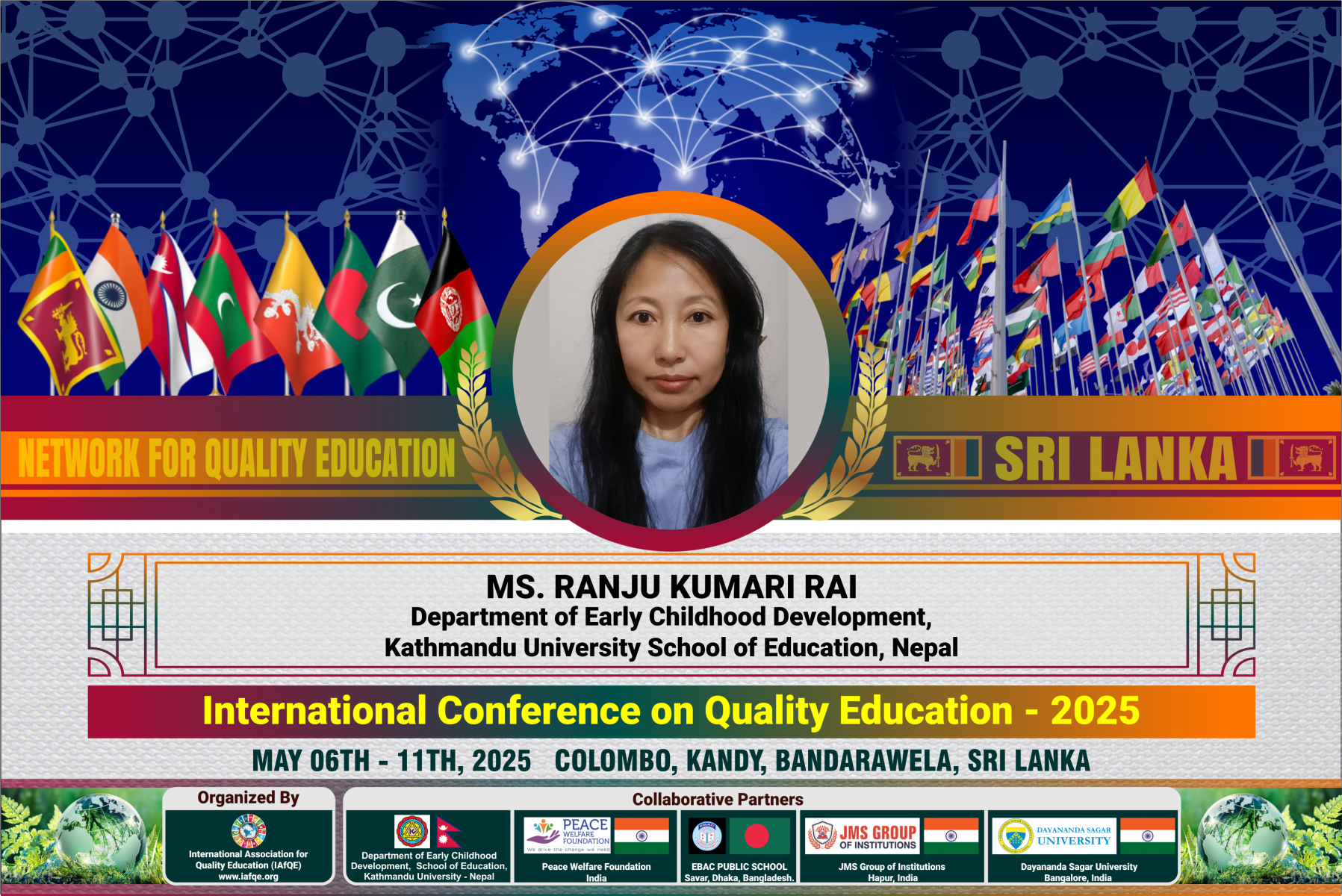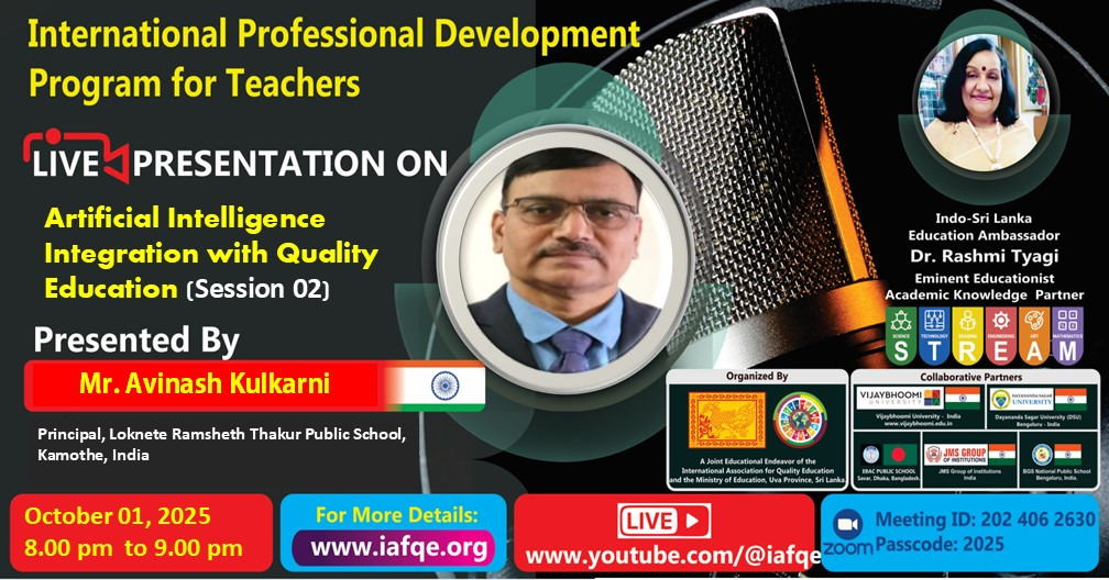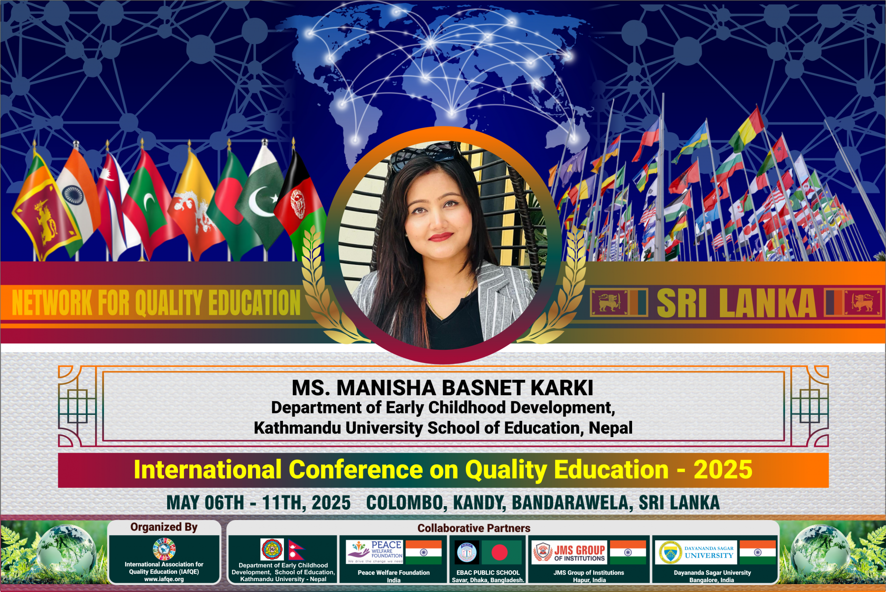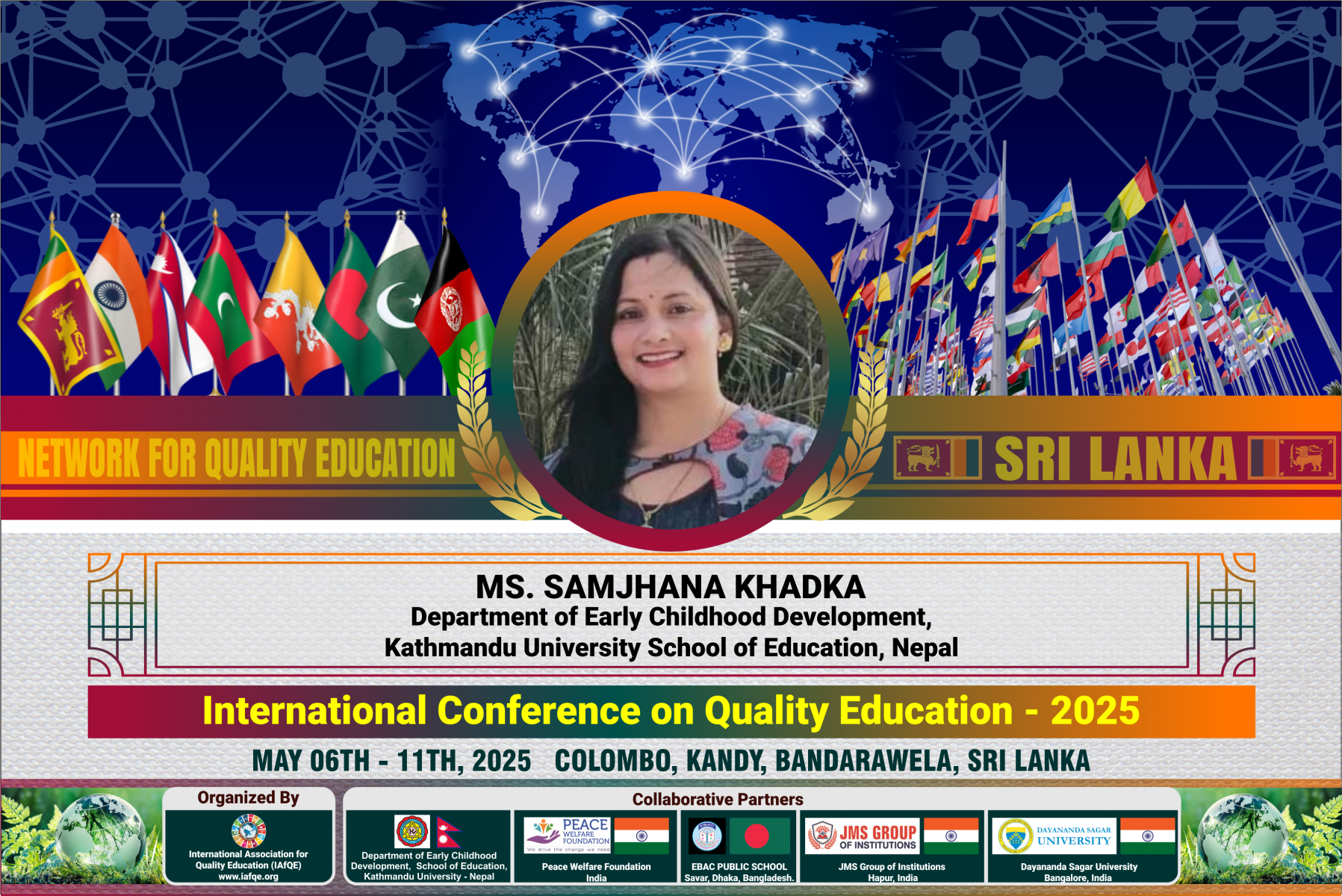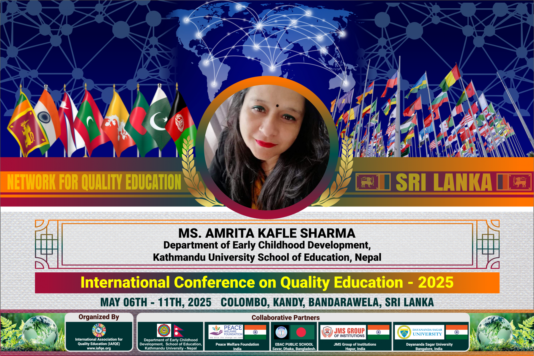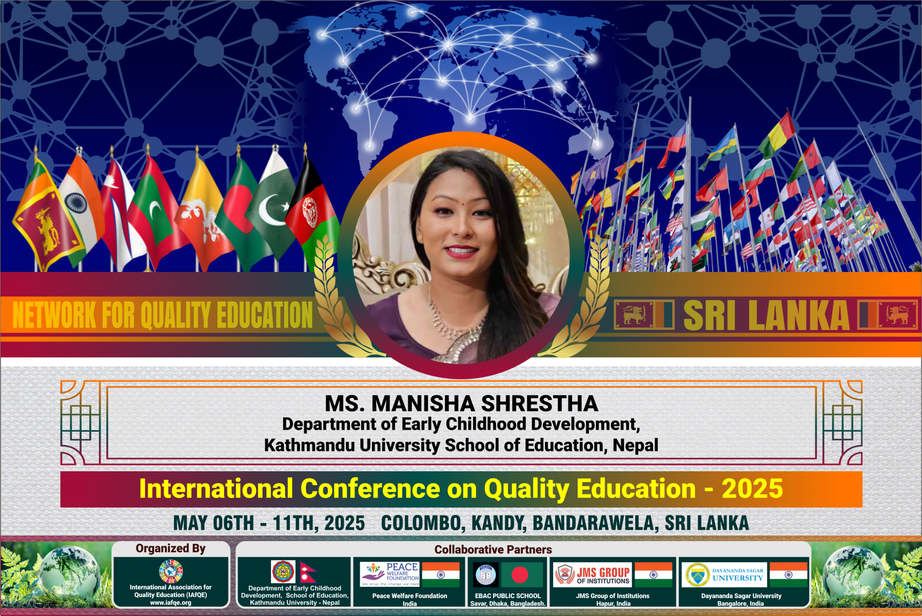 The conference is organized by the International Association for Quality Education (IAFQE) in collaborative partnership with the Ministry of Education, Uva Province, Sri Lanka; Dayananda Sagar University, Bengaluru, India; Vijaybhoomi University, Mumbai, India; the Pease Welfare Foundation; C4Cynergy, Mumbai, India; and Shikshalaya, Nepal.