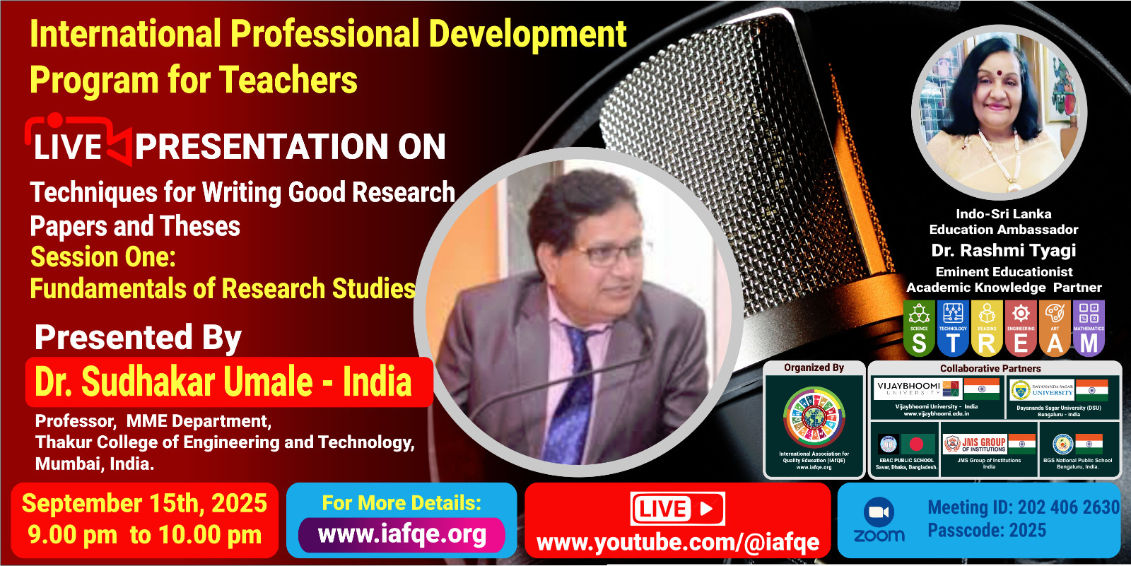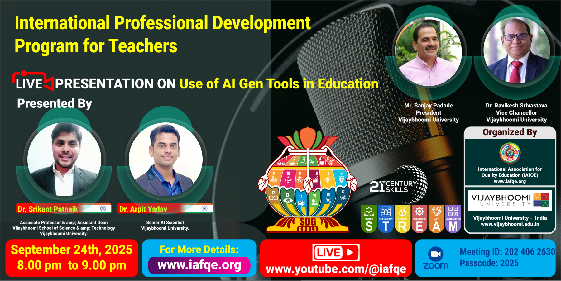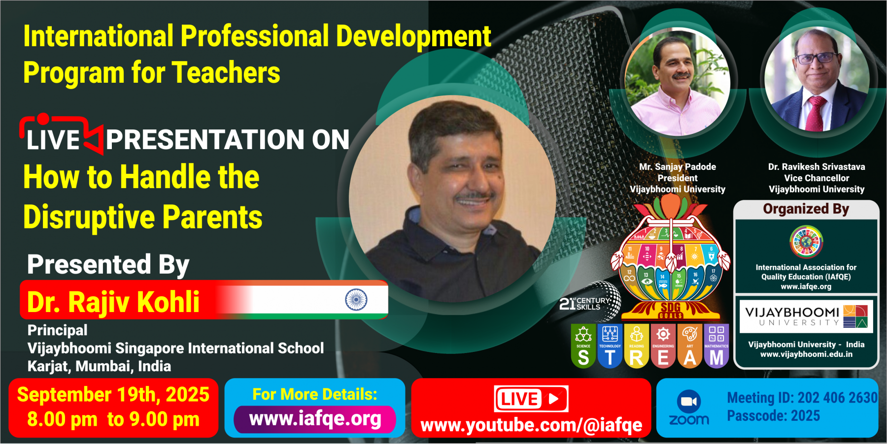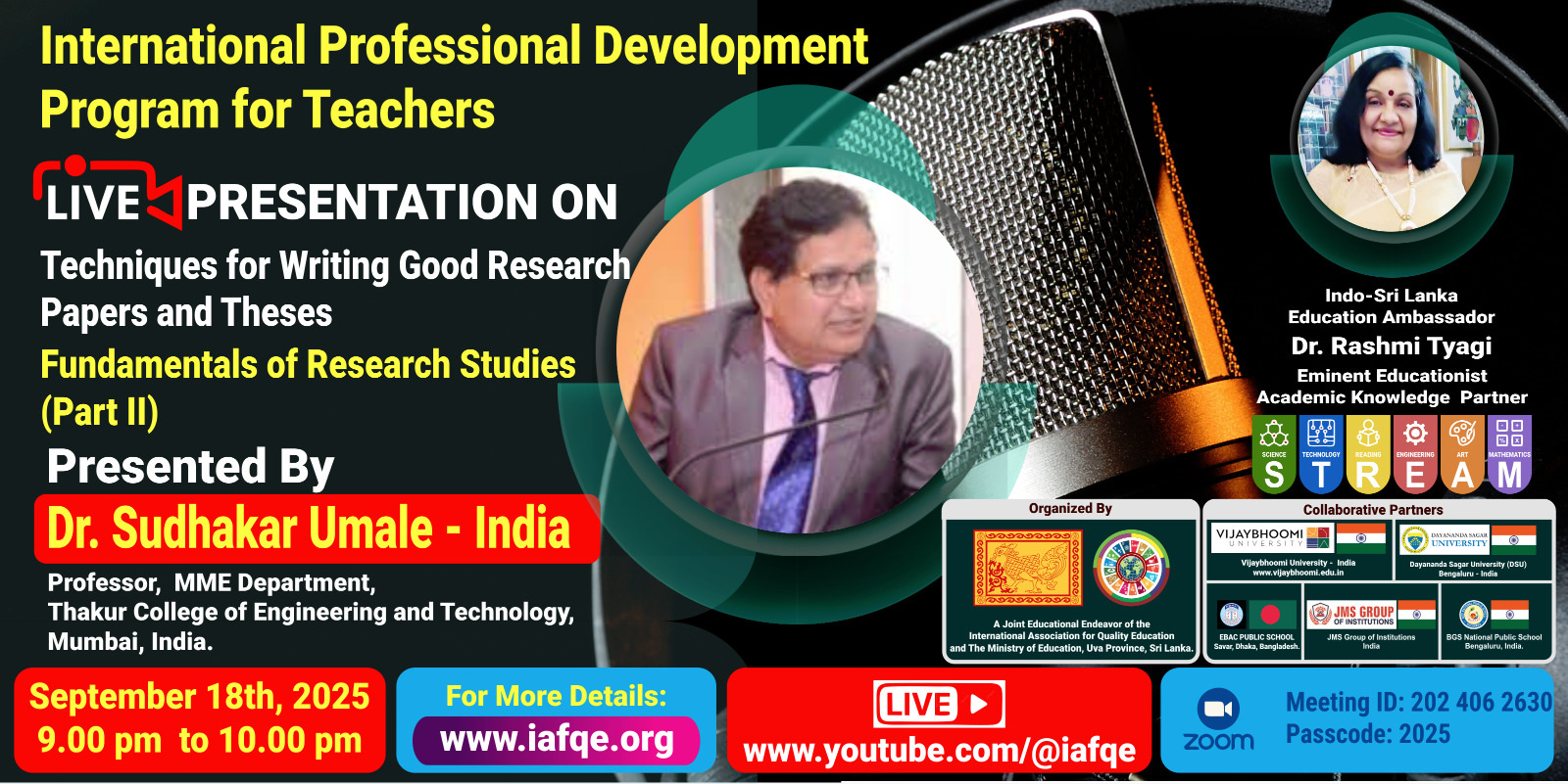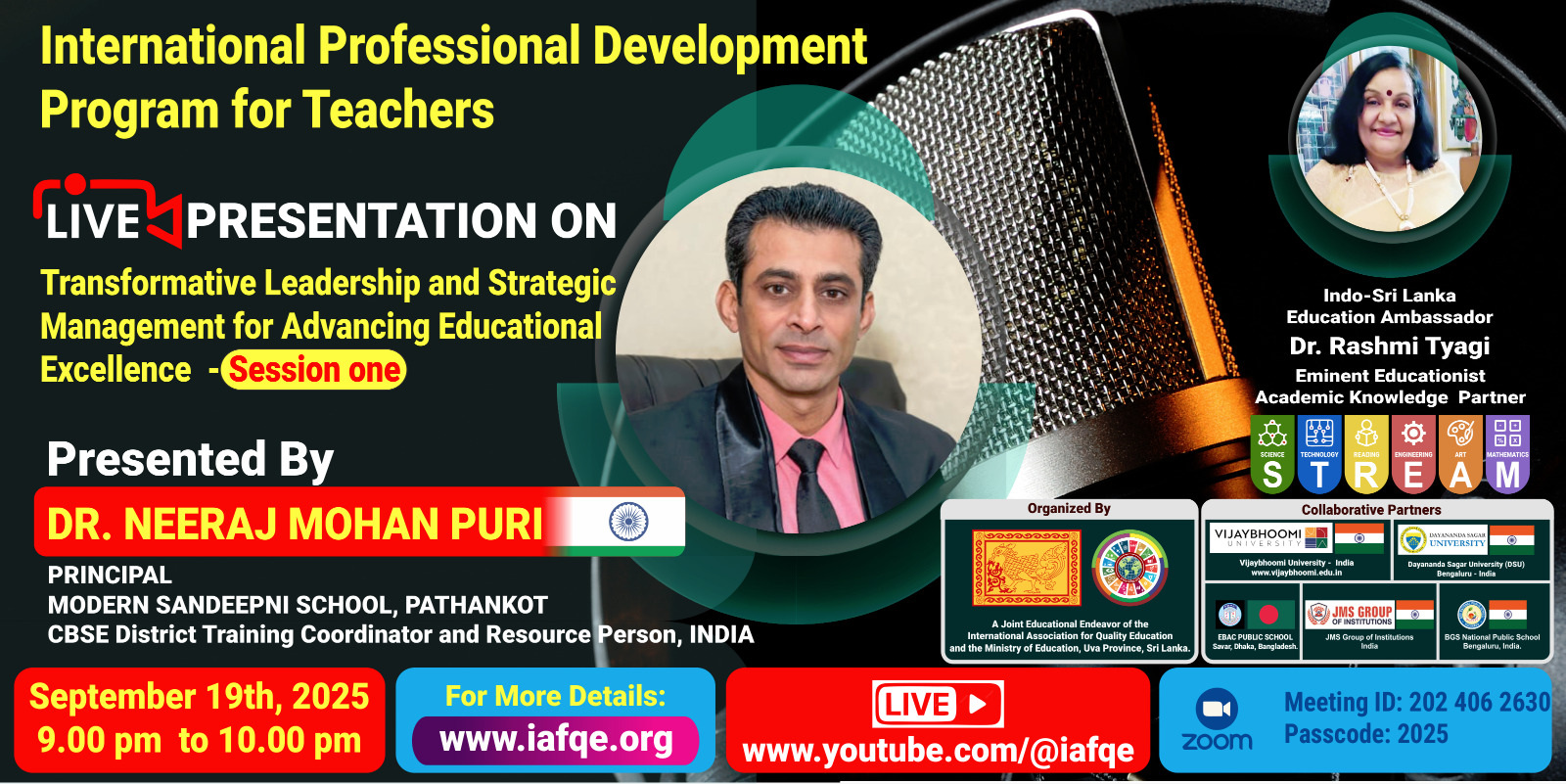 The conference is organized by the International Association for Quality Education (IAFQE) in collaborative partnership with the Ministry of Education, Uva Province, Sri Lanka; Dayananda Sagar University, Bengaluru, India; Vijaybhoomi University, Mumbai, India; the Pease Welfare Foundation; C4Cynergy, Mumbai, India; and Shikshalaya, Nepal.