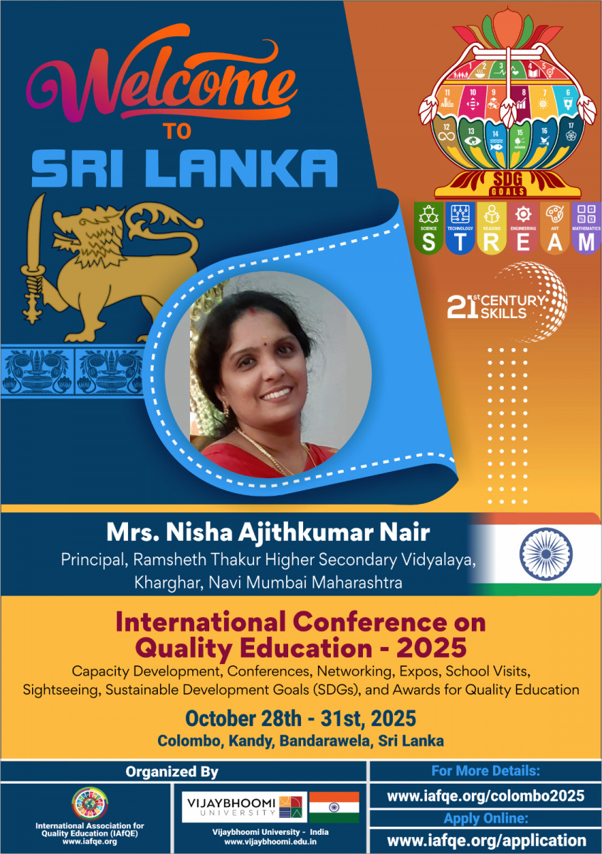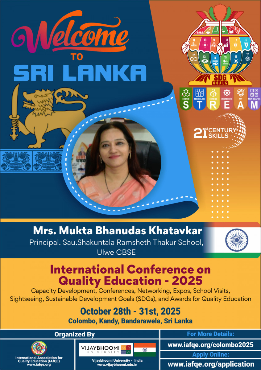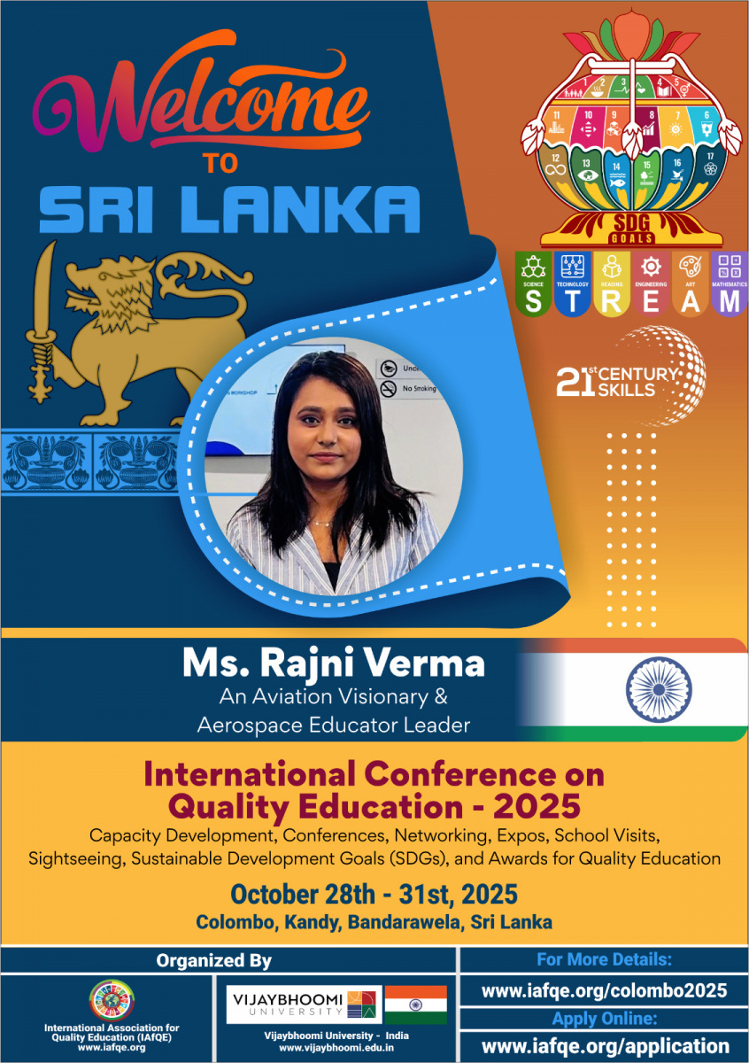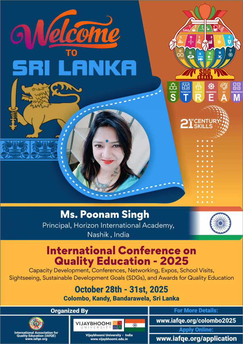 The International Conference on Quality Education – 2026 will take place from May 18th to 20th, 2026, in Colombo, Sri Lanka. The event will bring together global leaders in education, school owners, principals, educators, teachers, and distinguished VIPs from various countries.