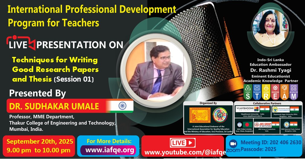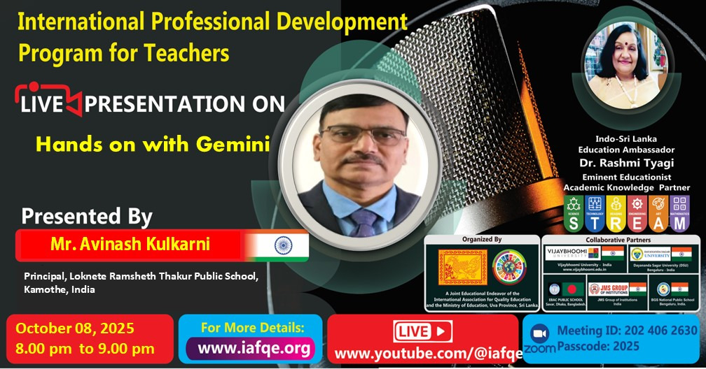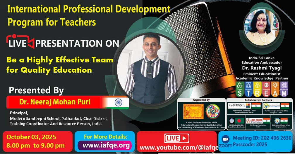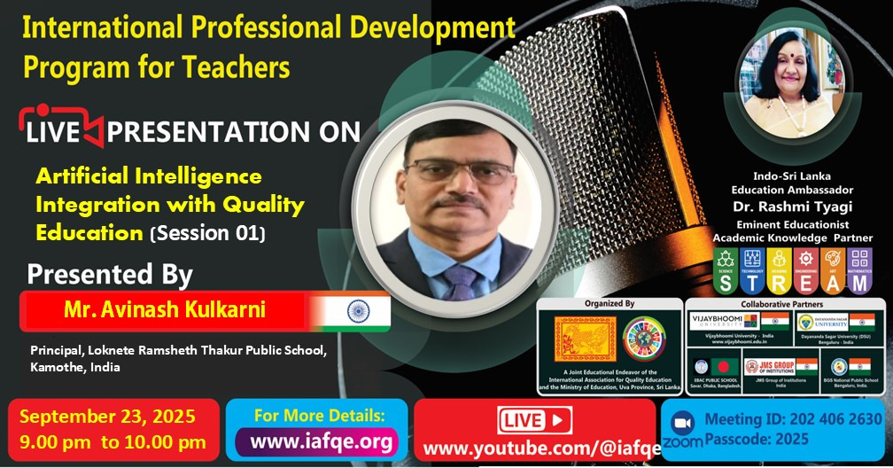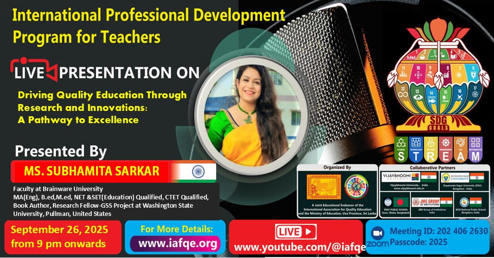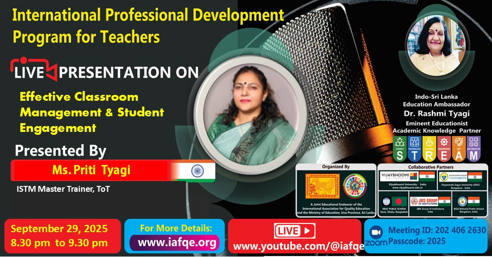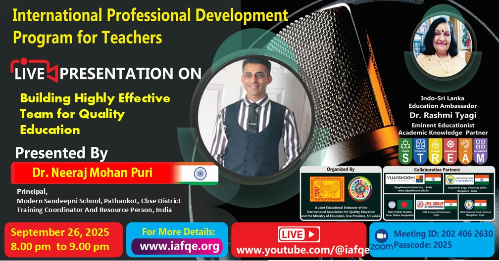 IAFQE establishes international platforms to facilitate the sharing of best practices in education. Live presentations, interviews and panel discussions enhance knowledge by showcasing expertise and best practices. Through live interviews, presentations, and panel discussions, IAFQE continuously raises awareness among ordinary people and contributes to the capacity-building of teachers, principals, and educators. We welcome stakeholders in the education sector to participate as resource persons in live interviews, presentations, and panel discussions.
