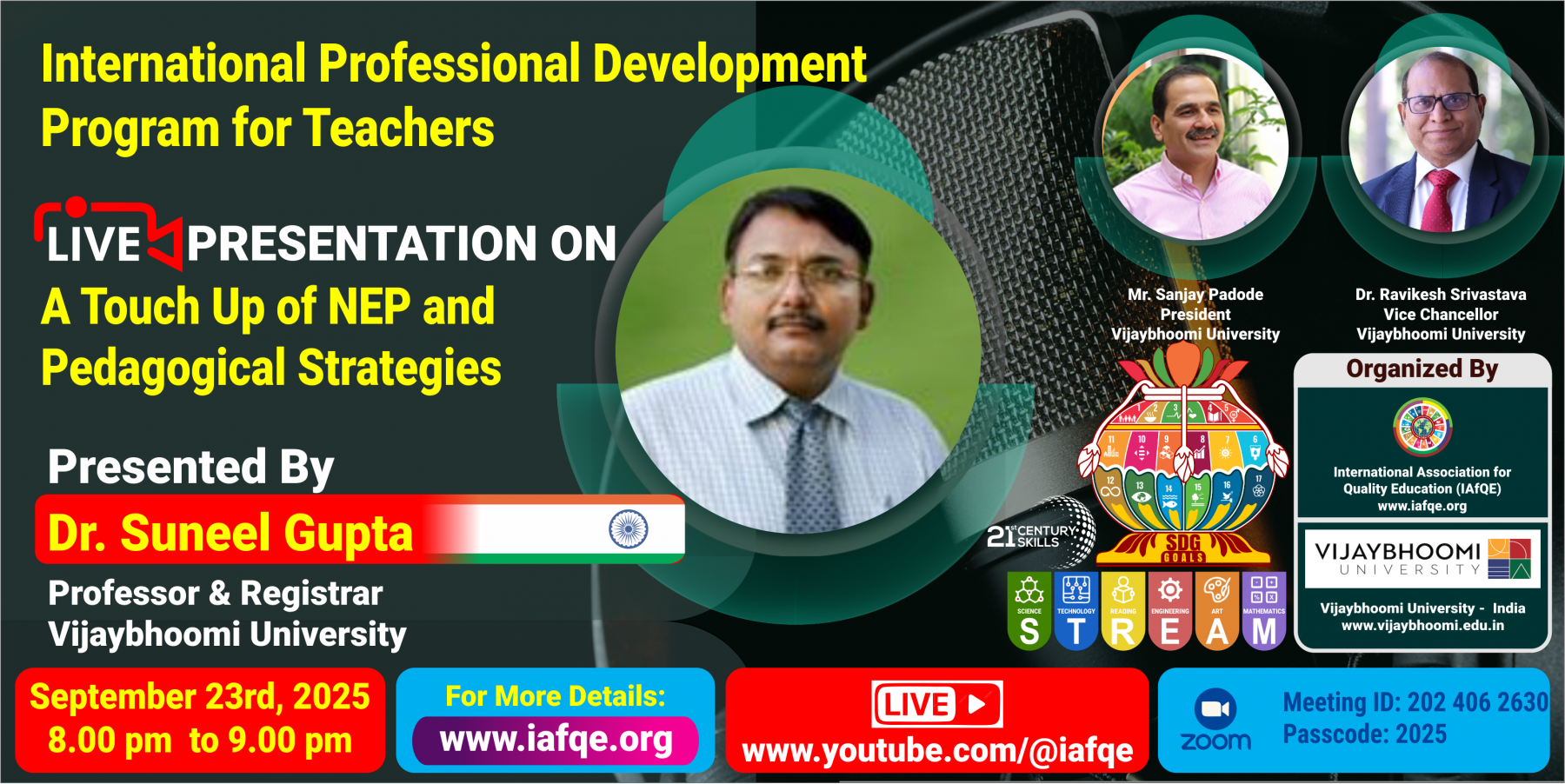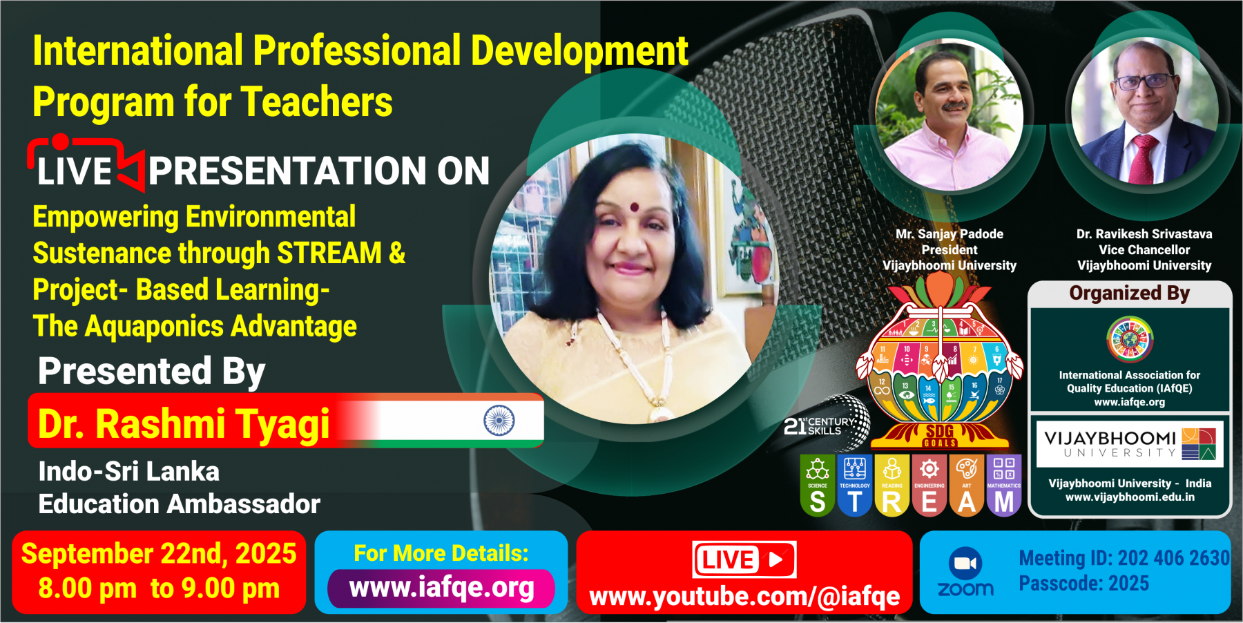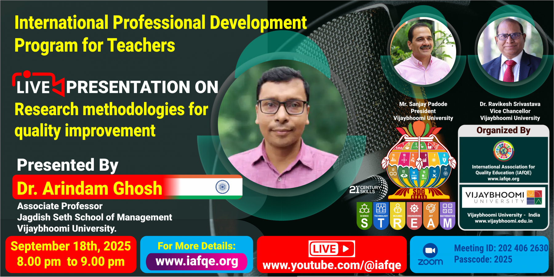The primary objective of this conference is to enhance the quality of early childhood, primary, secondary, and higher education by empowering STREAM education, employability skills, entrepreneurship skills, green education, and mindfulness to build multi-talented global citizens with 21st-century skills and strong spiritual well-being.