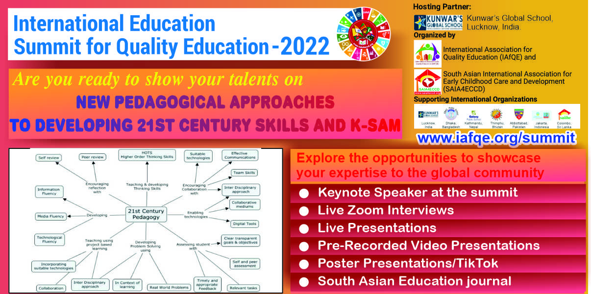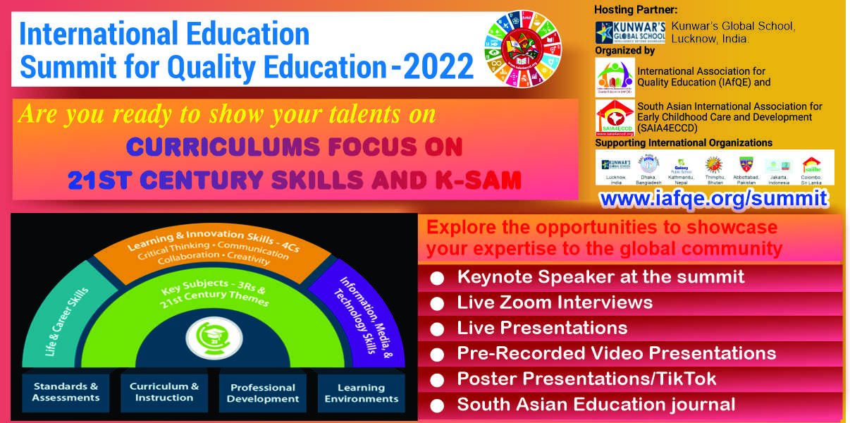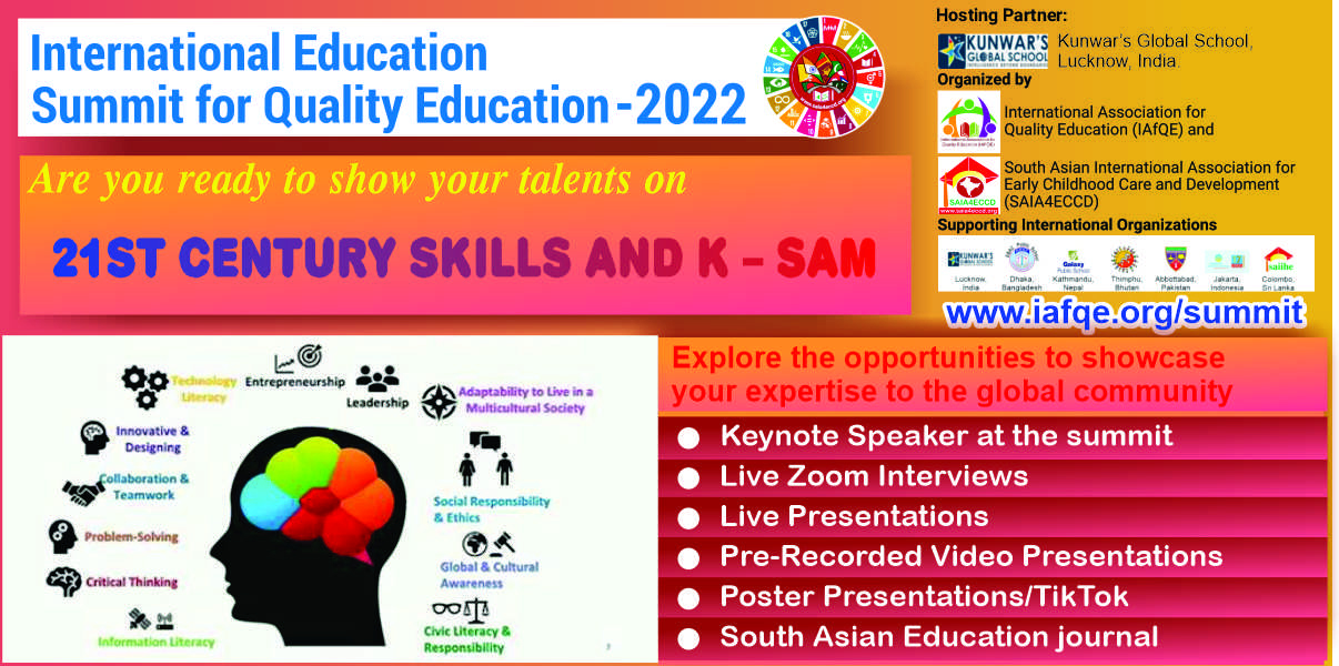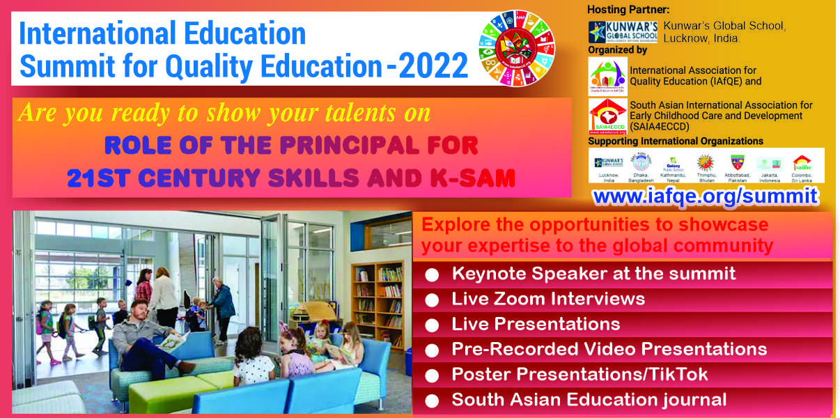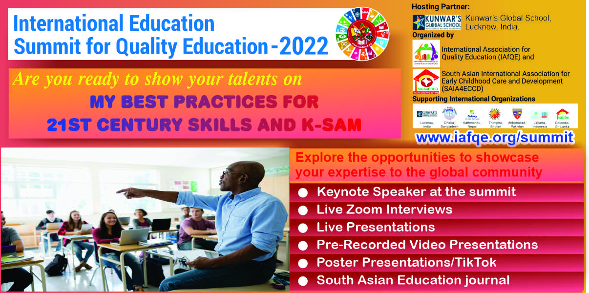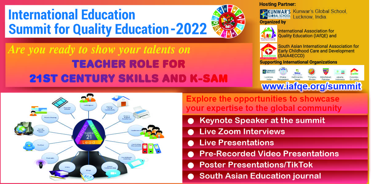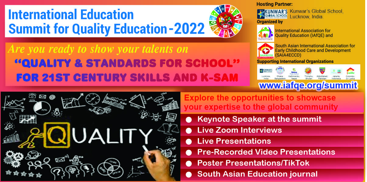The International Education Summit for Quality Education – 2022, is being organized by the International Association for Quality Education(IAfQE) & South Asian International Association For Early Childhood Care and Development (SAIA4ECCD).