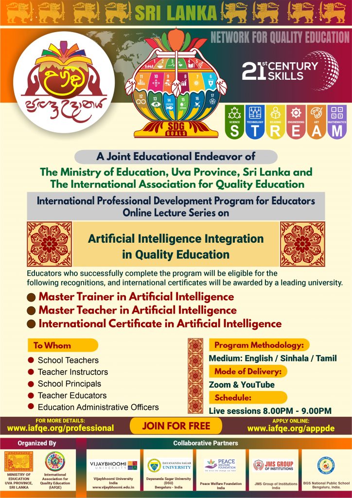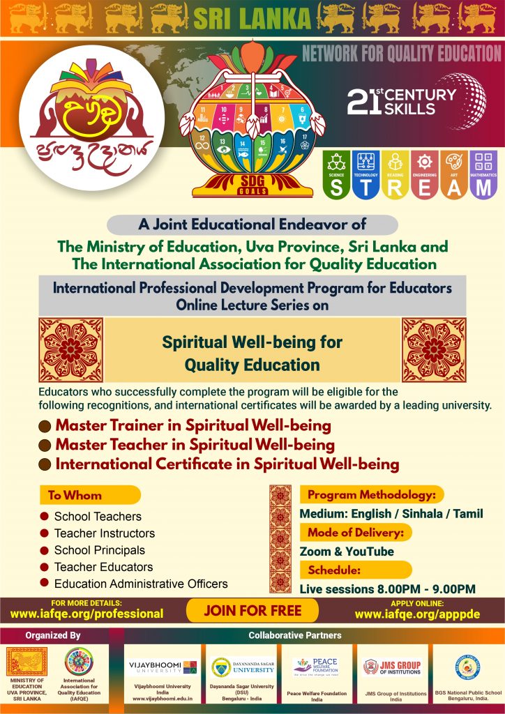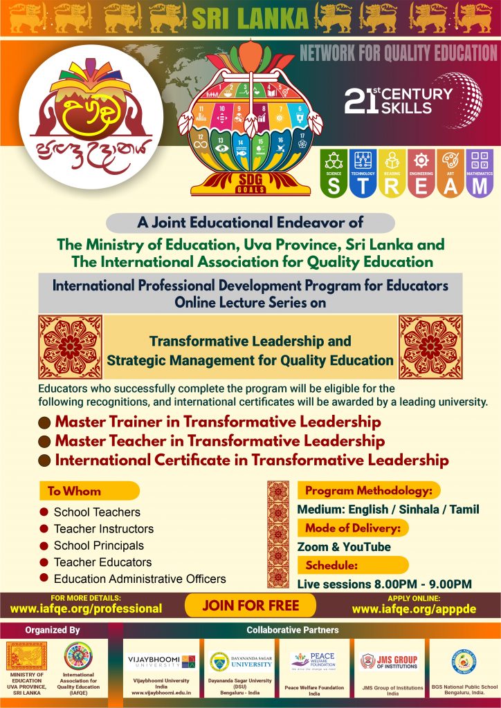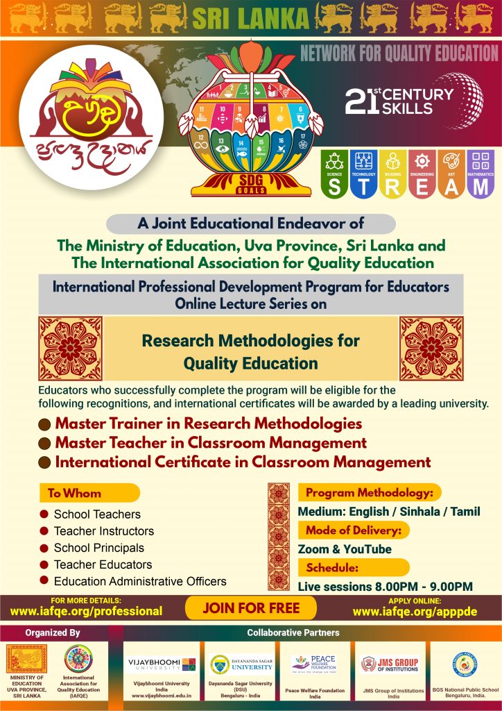 This project is a Joint Educational Endeavor of The International Association for Quality Education and The Ministry of Education, Uva Province, Sri Lanka, with the collaborative partnerships of Universities, organizations, schools, and educational leaders from the global community.