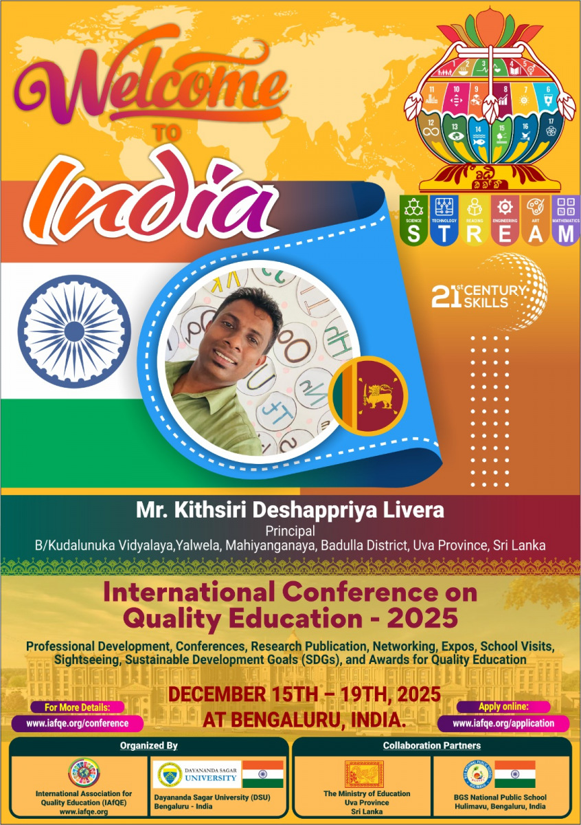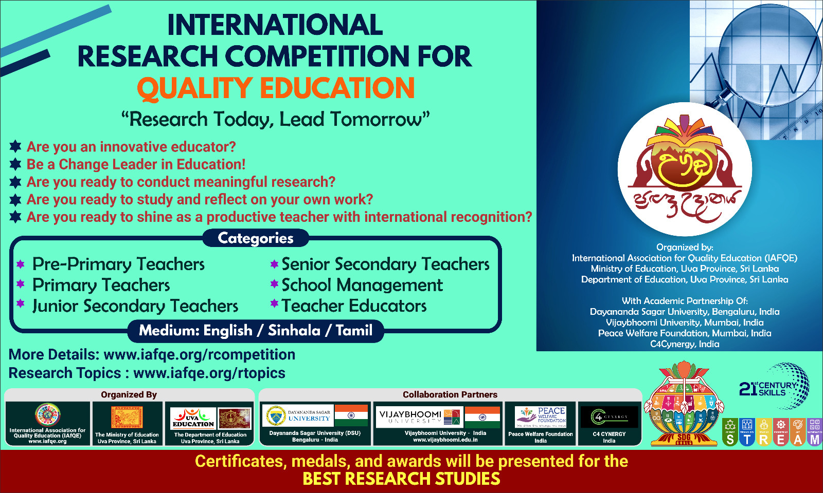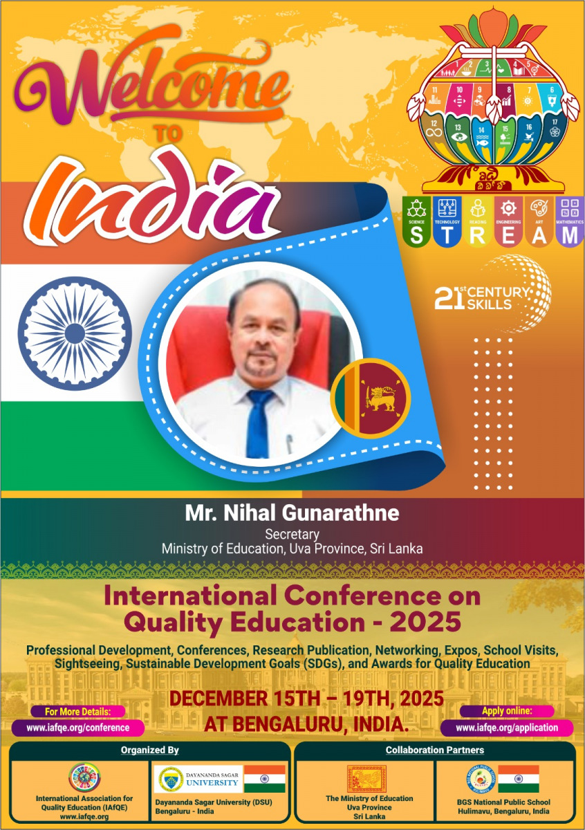 In today’s interconnected world, international collaboration is no longer a choice, but a necessity. The partnership between the Uva Provincial Education Department, the International Association for Quality Education (IAQE), and global universities reflects our commitment to building bridges of learning across nations. This collaboration brings global expertise, modern pedagogies, and technology-enabled practices into our classrooms — empowering both teachers and students to think critically, create boldly, and act compassionately.