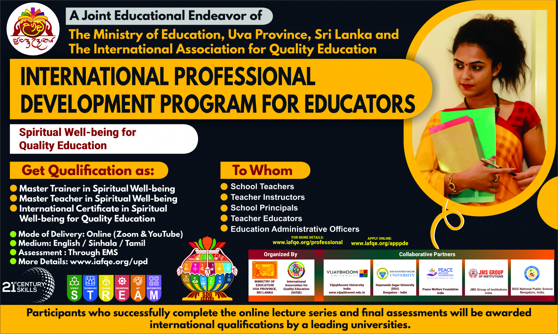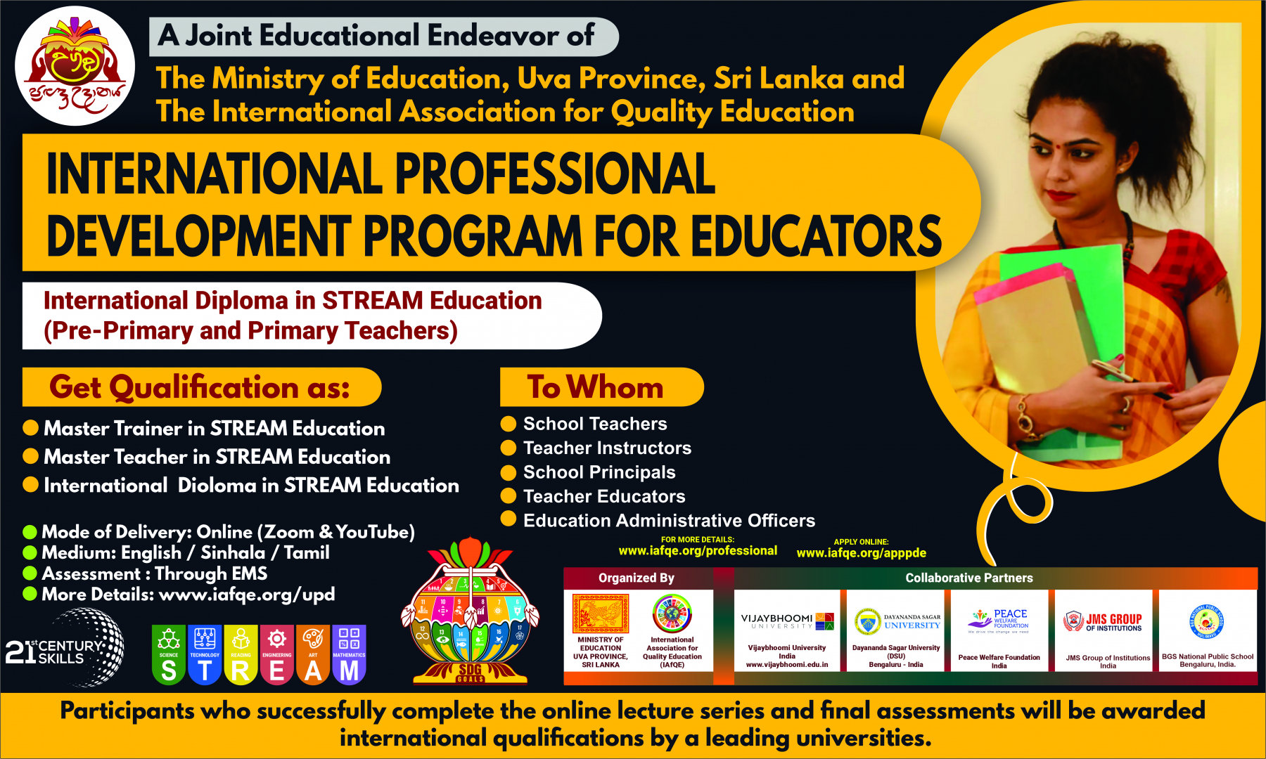 This project is a Joint Educational Endeavor of The International Association for Quality Education and The Ministry of Education, Uva Province, Sri Lanka, with the collaborative partnerships of Universities, organizations, schools, and educational leaders from the global community.