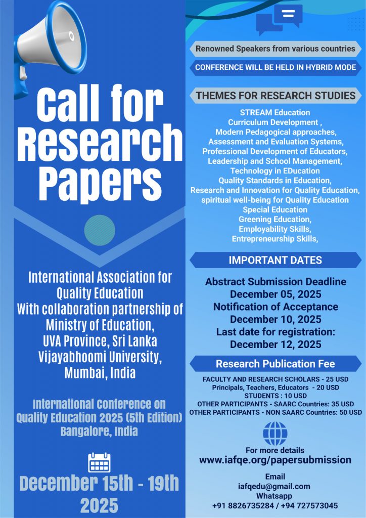 As another major initiative, the International Conference Series on Quality Education is being organized by the IAFQE with the support of universities, institutes, and schools. This conference series aims to provide an international platform for educators across the globe. It offers a dynamic space for educators, researchers, and institutions to exchange best practices, share expertise, and present research findings. It also supports young teachers and learners by offering opportunities for professional growth and competency development on an international stage.