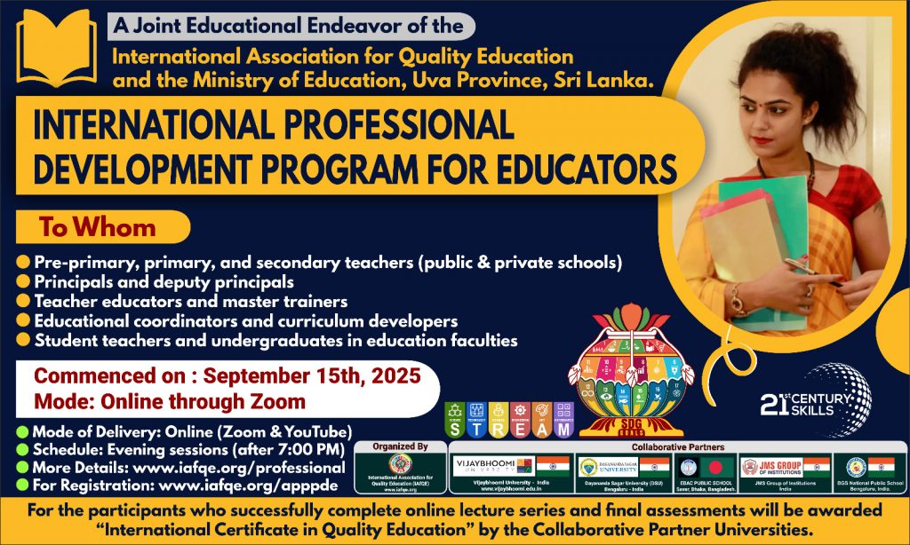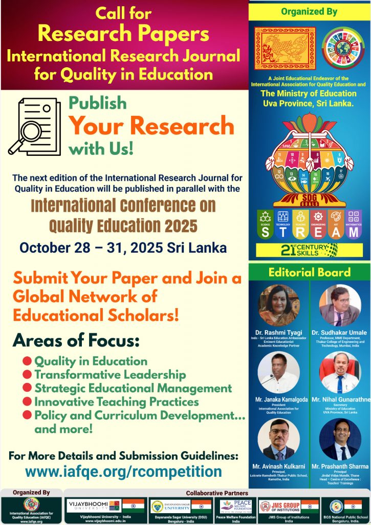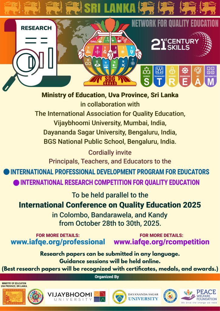 This research competition is a Joint Educational Endeavor of the International Association for Quality Education and the Ministry of Education, Uva Province, Sri Lanka.