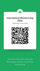 Applicants are encouraged to join the International Women’s Day 2026 WhatsApp Community through the QR code or link to receive updates and announcements.