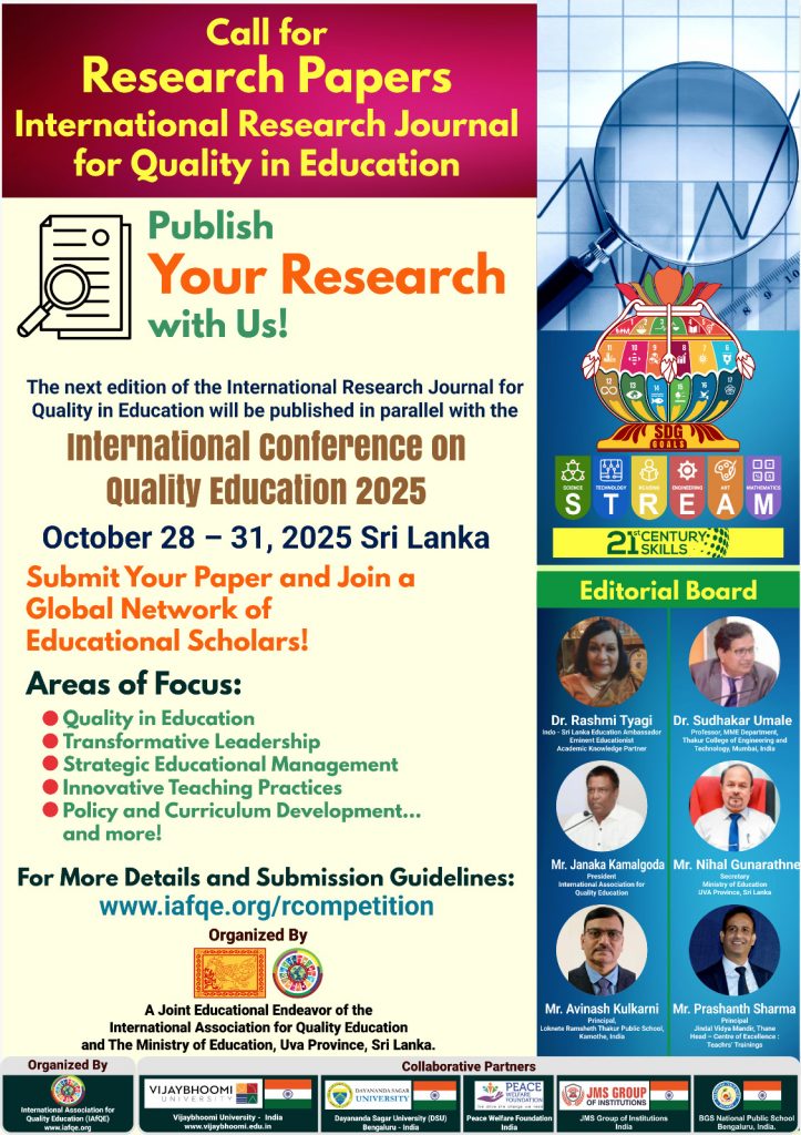 The International Conference on Quality Education 2025 (16th Edition) is a globally recognized forum that convenes leading educators, researchers, academic professionals, students, school leaders, policymakers, educational technologists, industry representatives, and international delegates.