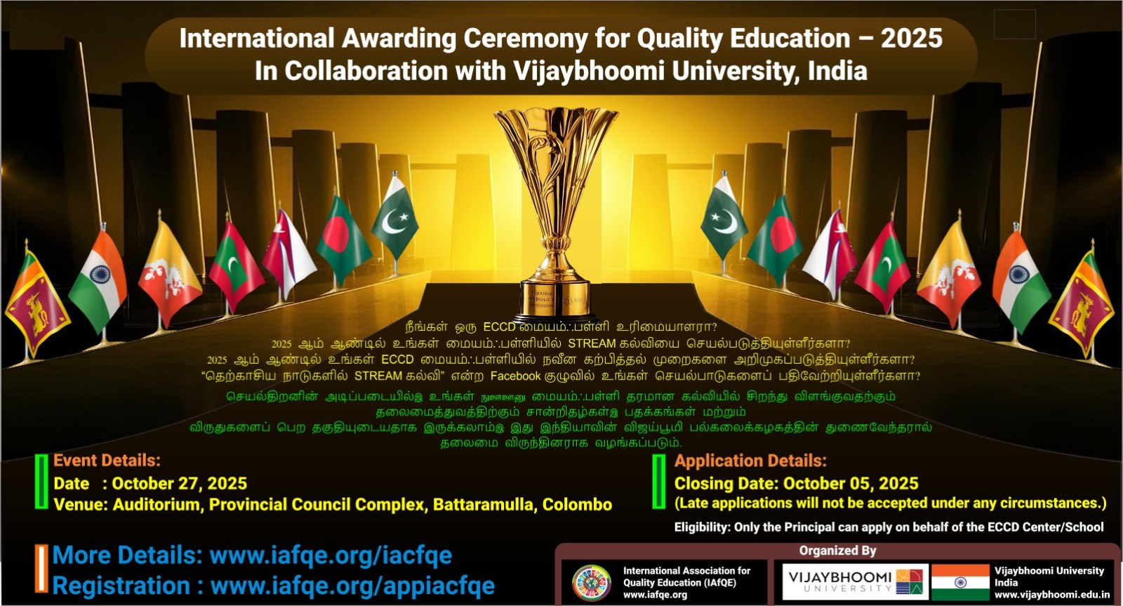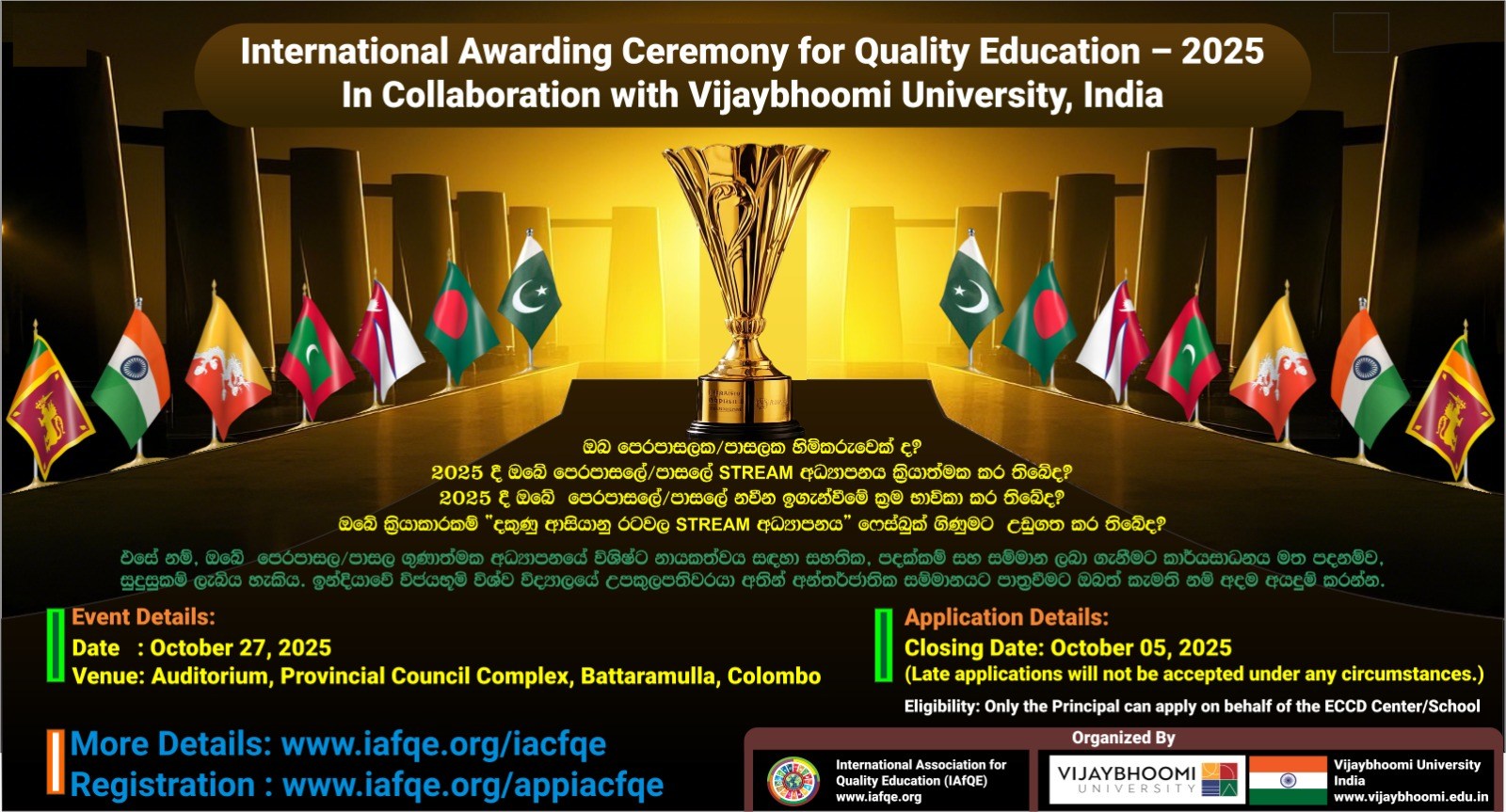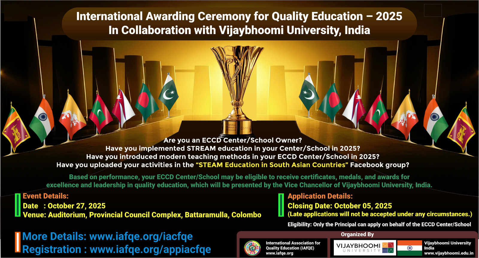 Awards will be granted based on performance at the International Awarding Ceremony for Quality Education – 2025